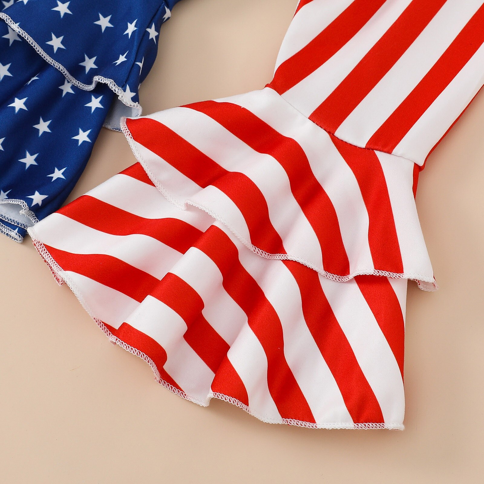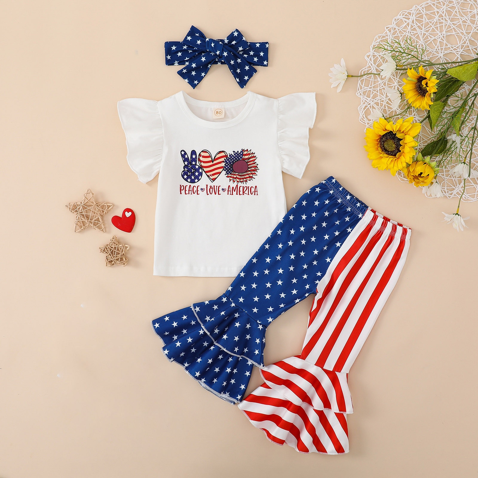 Новорожденные девочки День независимости пышные топы с короткими рукавами и буквенным принтом Труба длинные брюки повязка на голову наряды