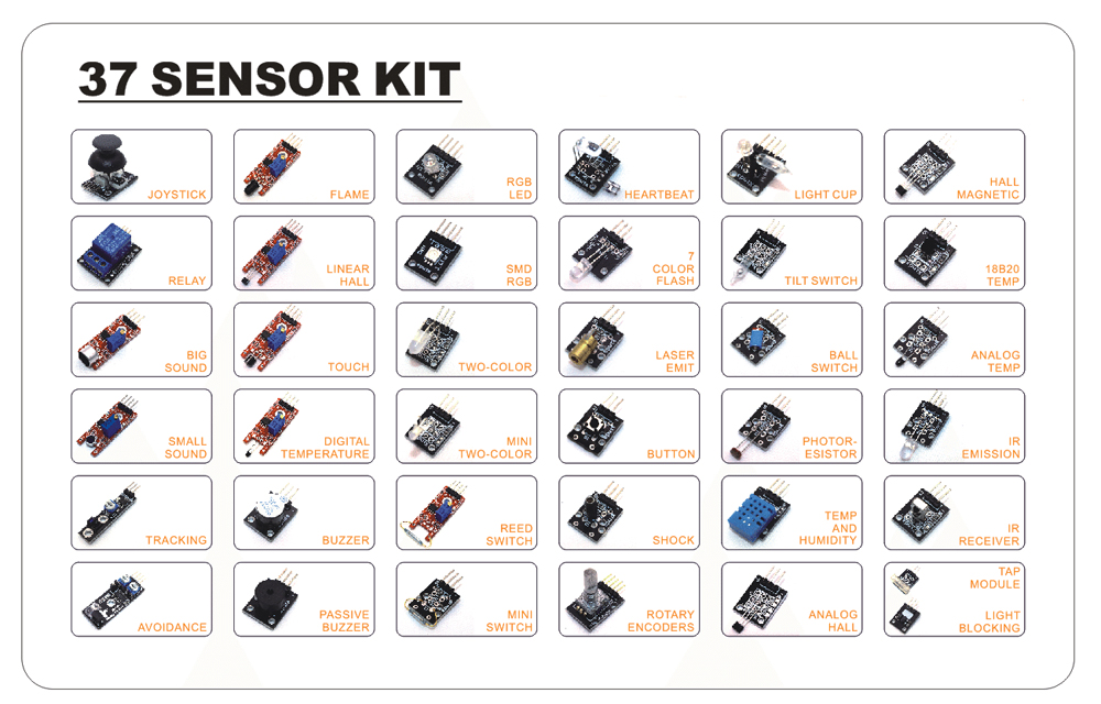 В комплект входит 37 типов сенсорного модуля, как показано ниже: