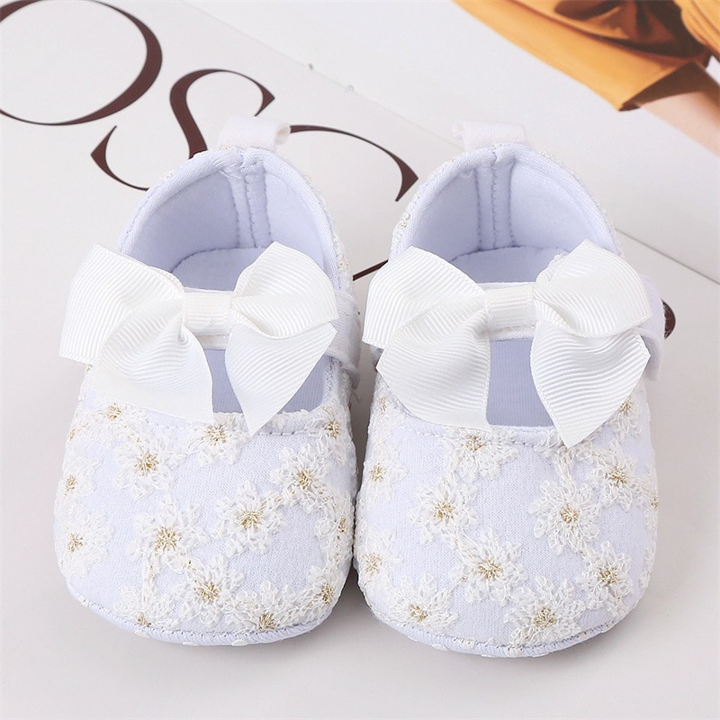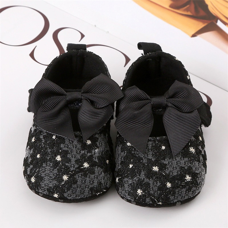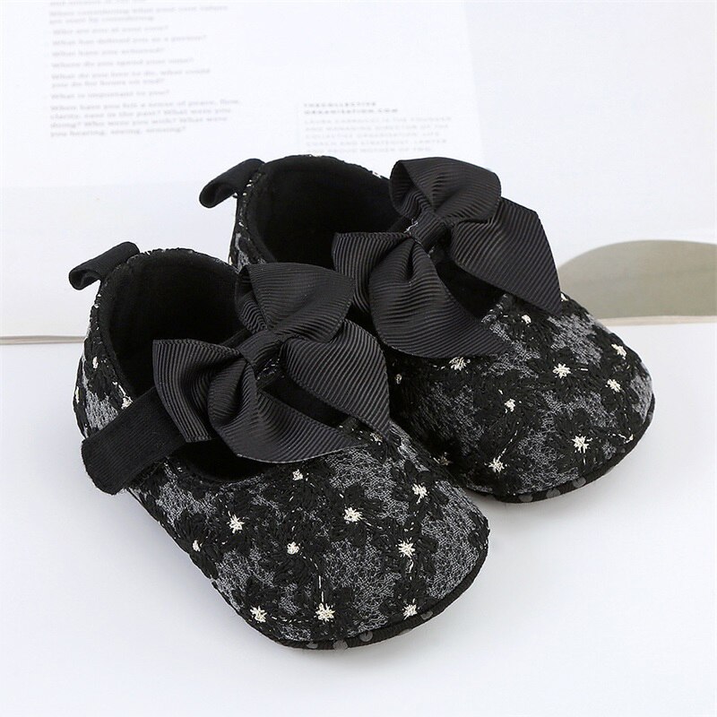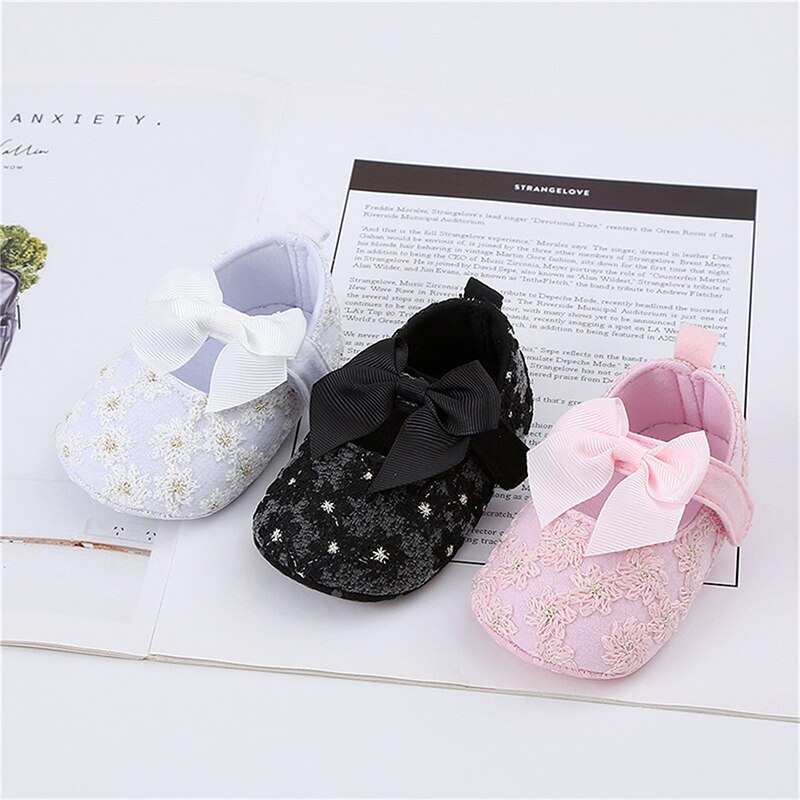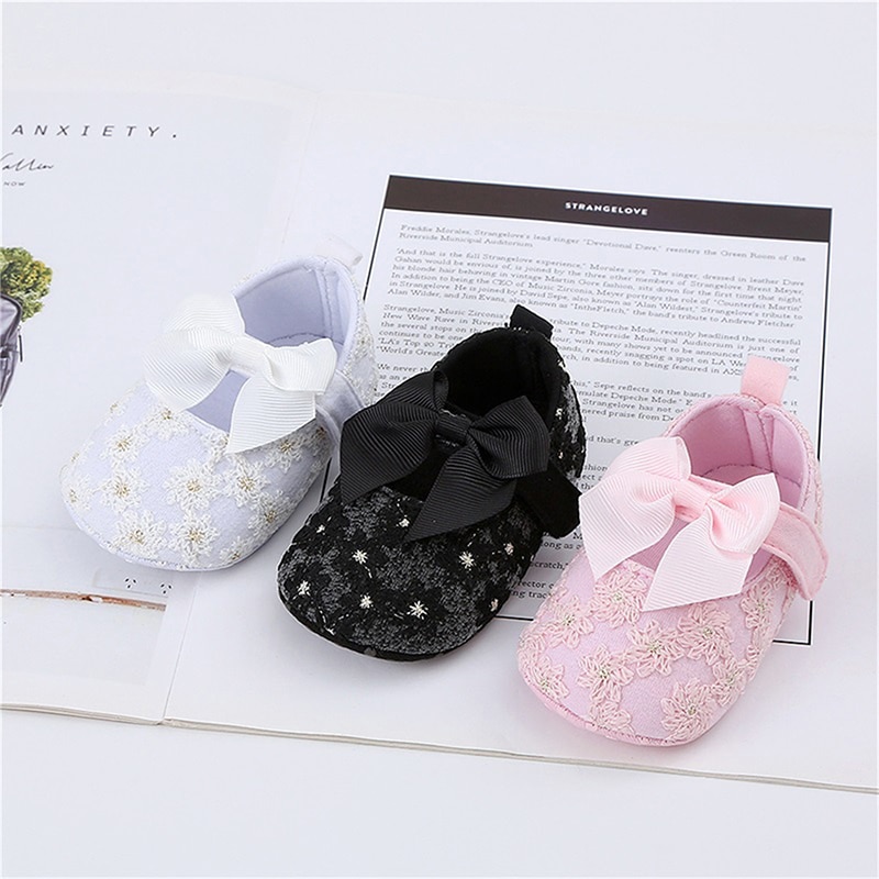 Обувь на плоской подошве для новорожденных девочек, милые Нескользящие туфли с цветочным бантом, для дома и улицы, обувь для начинающих ходить малышей