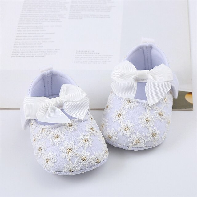 Описание: Ботинки маленьких девочек плоские, ботинки малыша мягкого единственного Не-выскальзывания Бовкнот цветка крытые на открытом воздухе