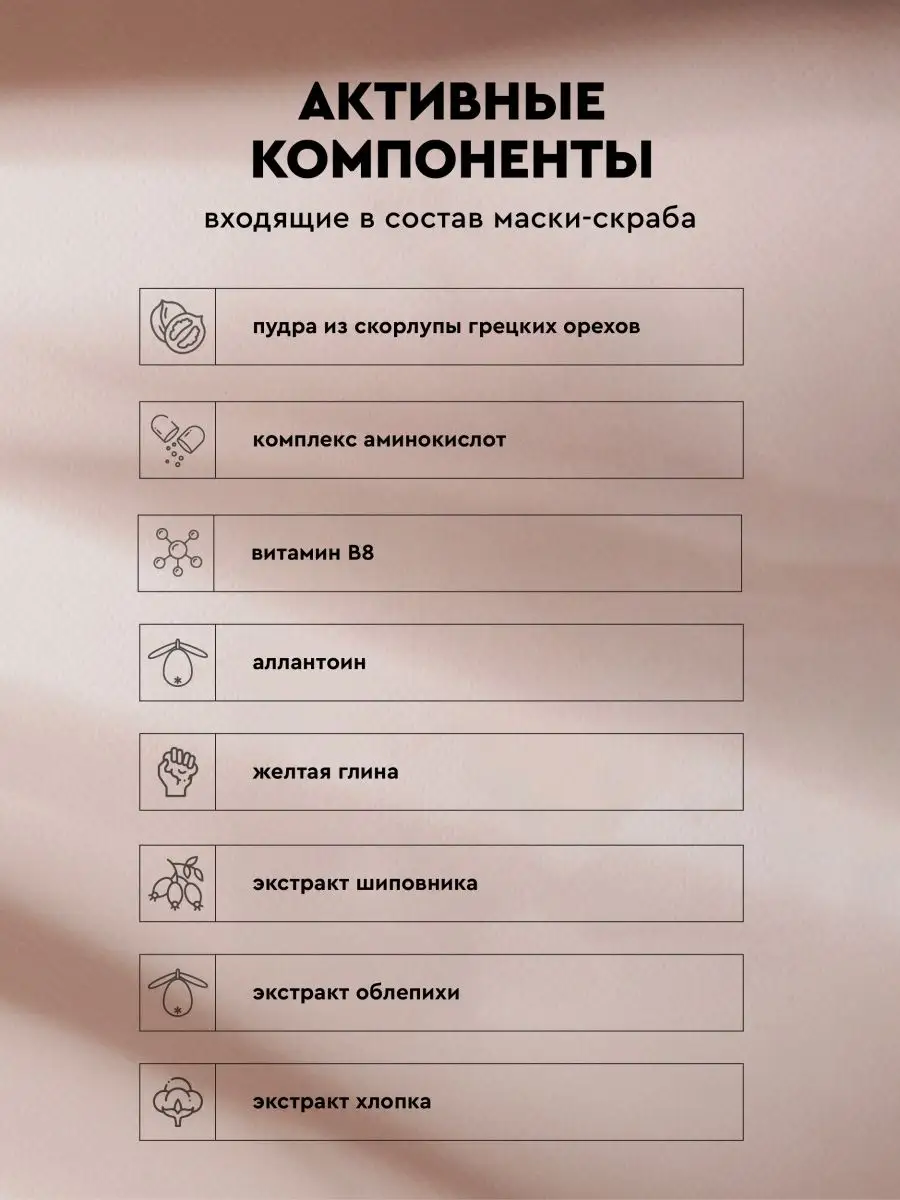 Артикул 16007335 Состав Aqua (вода), Cetearyl Alcohol (цетеариловый спирт), Canina Extract (экстракт шиповника), Glycerin; (глицерин), Yellow Clay (глина), Regia Shell Powder (порошок скорлупы ореха), Glyceryl Stearate; (глицерил стеарат), Polyglyceryl-6 Stearate (Полиглицерил-6 стеарат), Polyglyceryl-6 Behenate; (полиглицерил-6 бегенат), Hippophae Fruit Extract (экстракт облепихи), Gossypium Seed Extract; (экстракт хлопка), Betaine (бетаин), Proline, Serine, Inositol (детокс комплекс), Allantoin; (аллантоин), Melissa Leaf Oil (эфирное масло мелиссы), Citrus Leaf Oil (эфирное масло мандарина); Benzyl Alcohol (бензиловый спирт), Ethylhexylglycerin (этилгексилглицерин), Lactic Acid; (молочная кислота), Tetrasodium Glutamate Diacetate (диацетат глутамата тетранатрия), Linalool; Limonene, Geraniol