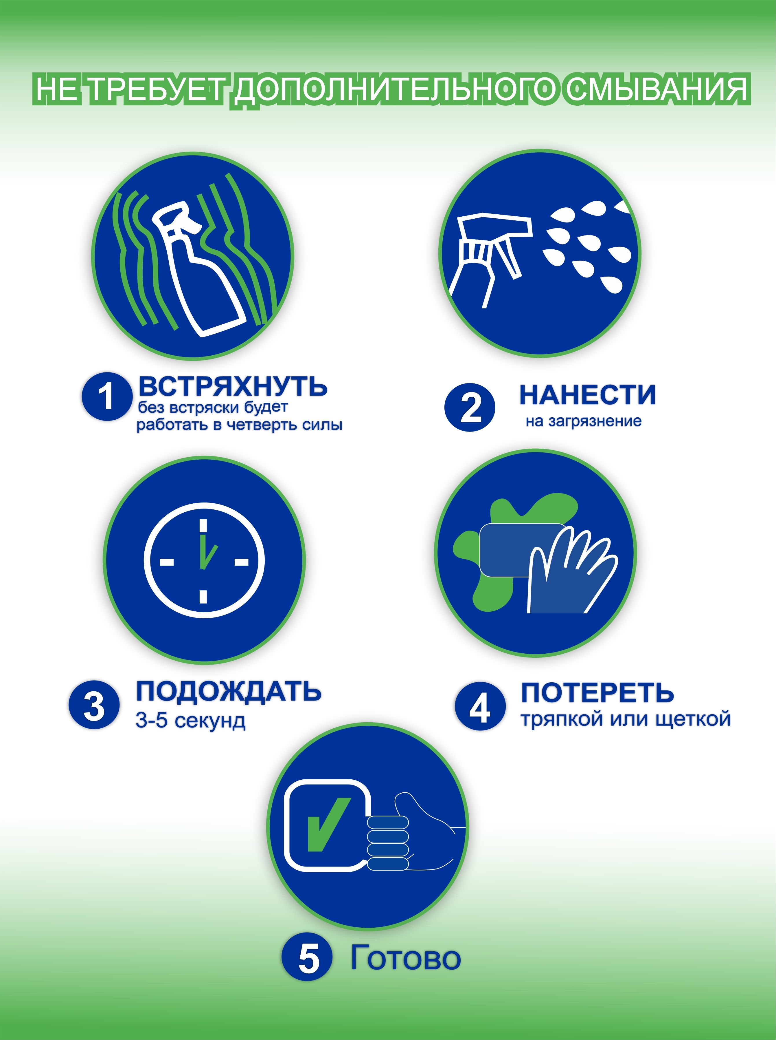 Особенности применения: Экосредство, Антибактериальный эффект, Гипоаллергенность, Антистатический эффект, Не требует смывания водой
