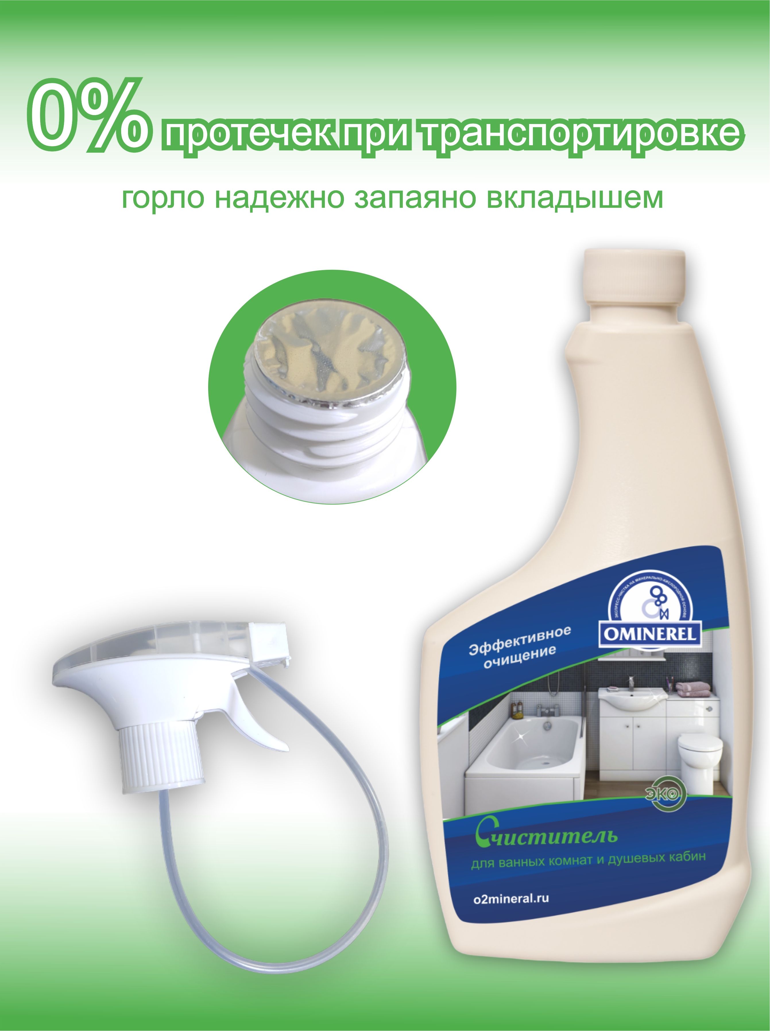 Очиститель для ванных комнат OMINEREL для легкого удаления водного камня, мыльных разводов, плесени