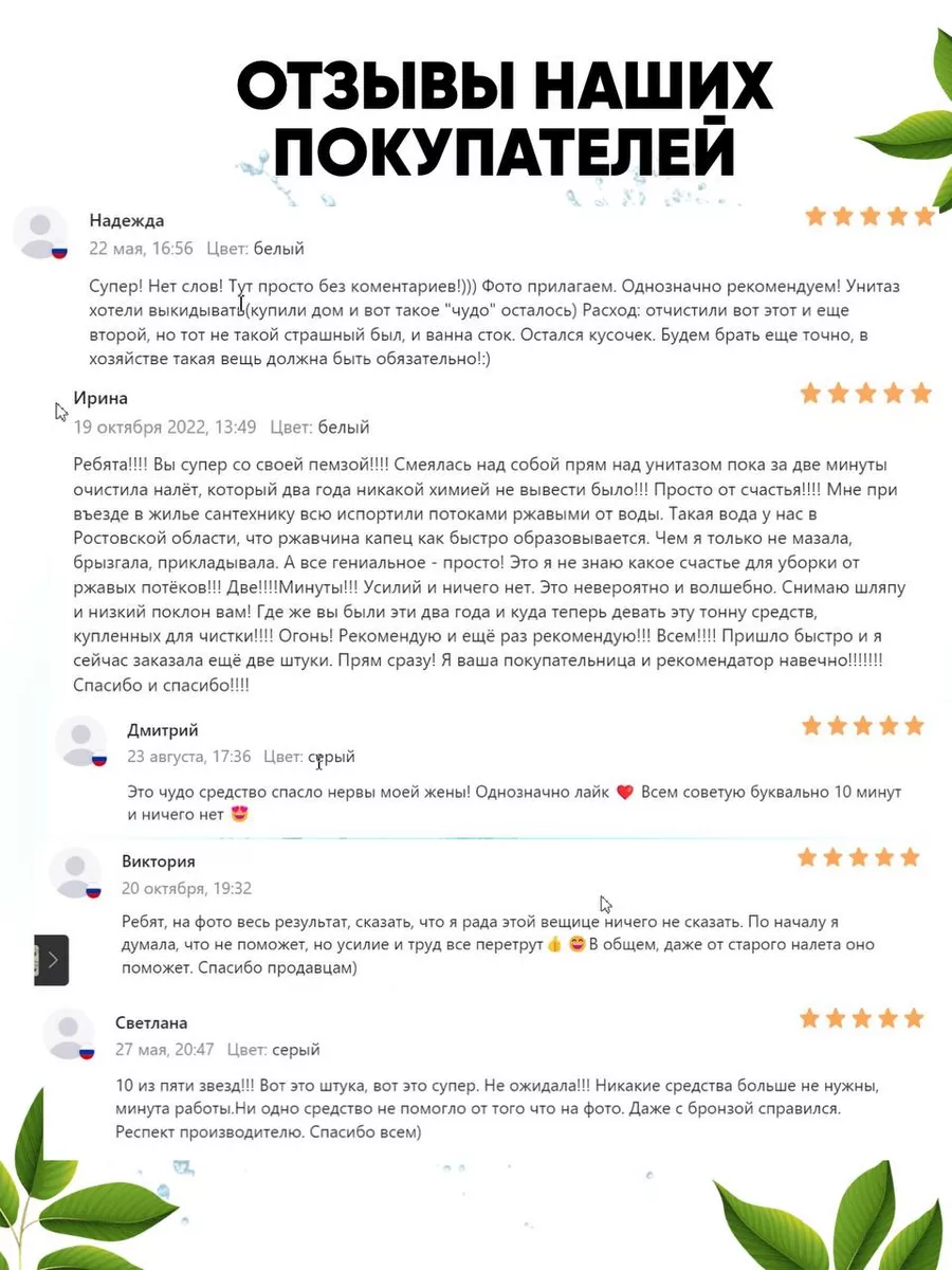 Эффект чистящего средства удаление известкового налета; очищение до блеска; удаление ржавчины