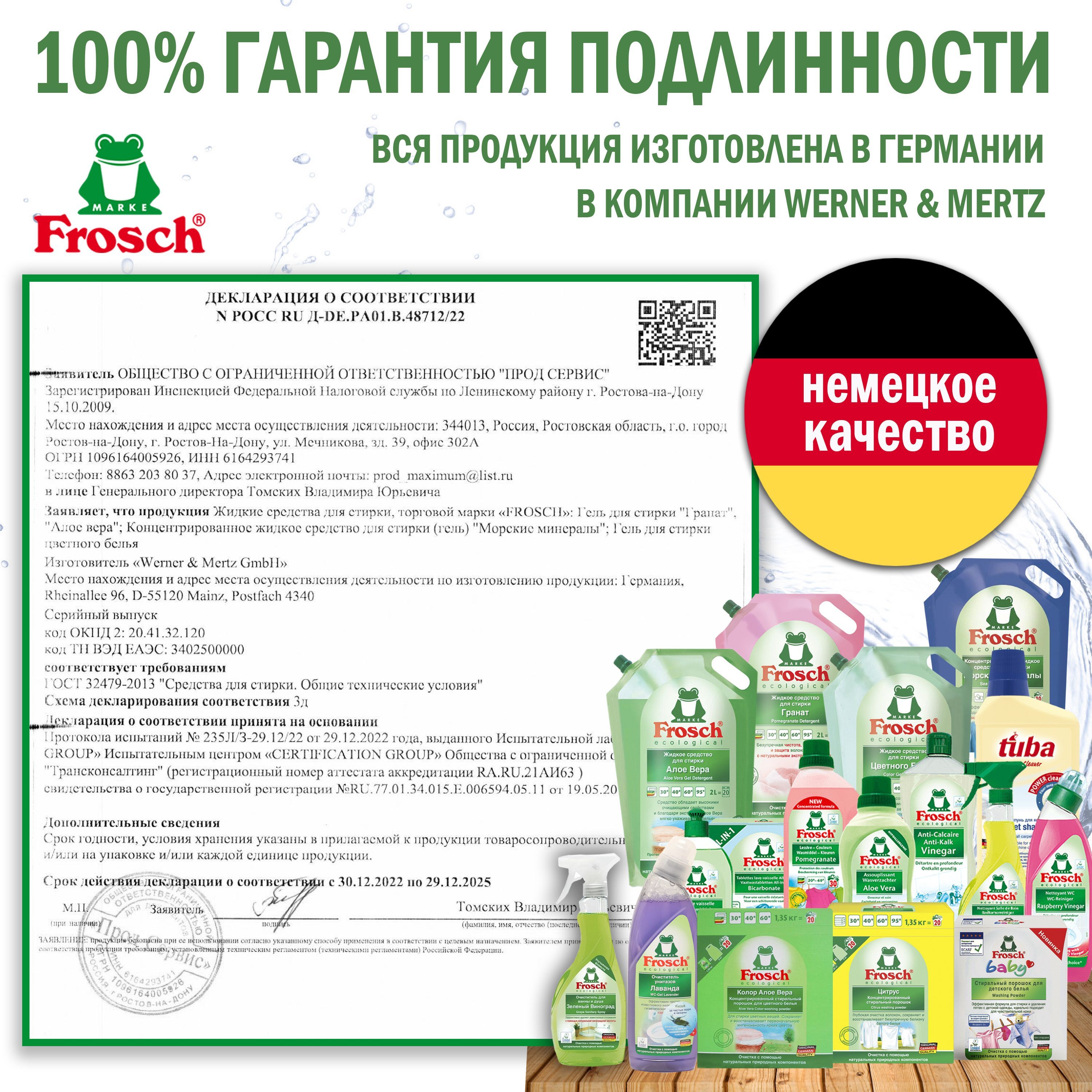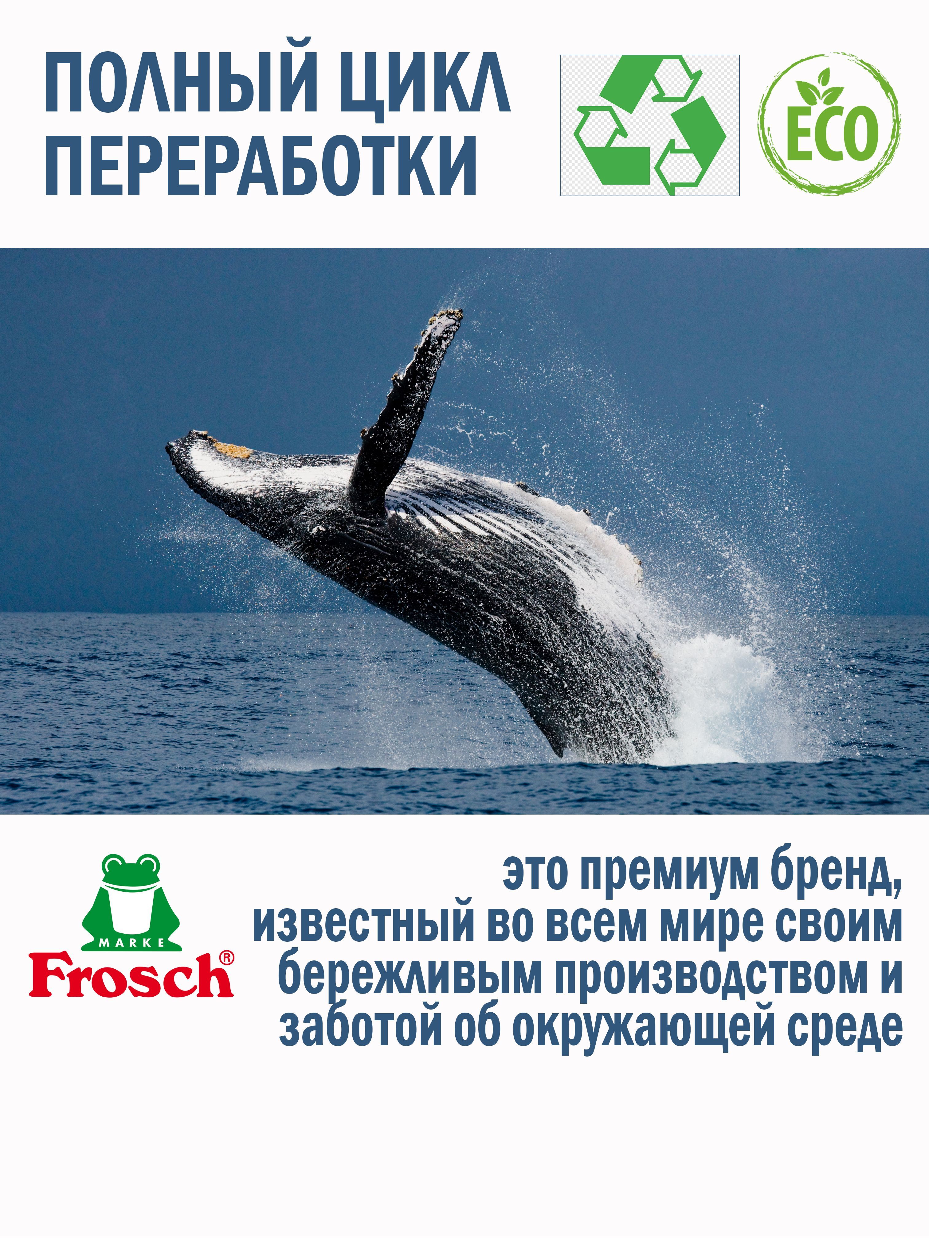 С заботой о самых маленькихКомпания Frosch производит безопасные средства, не содержит фосфатов, хлора, формальдегидов и других веществ, негативно влияющих на здоровье человека.С заботой об экологииПродукция создана на основе натуральных природных компонентов, которые эффективно справляются со своей задачей, безвредны для окружающей среды, так как полностью разлагаются в почве.С заботой о самом важномПродукция компании Frosch имеет ряд преимуществ: