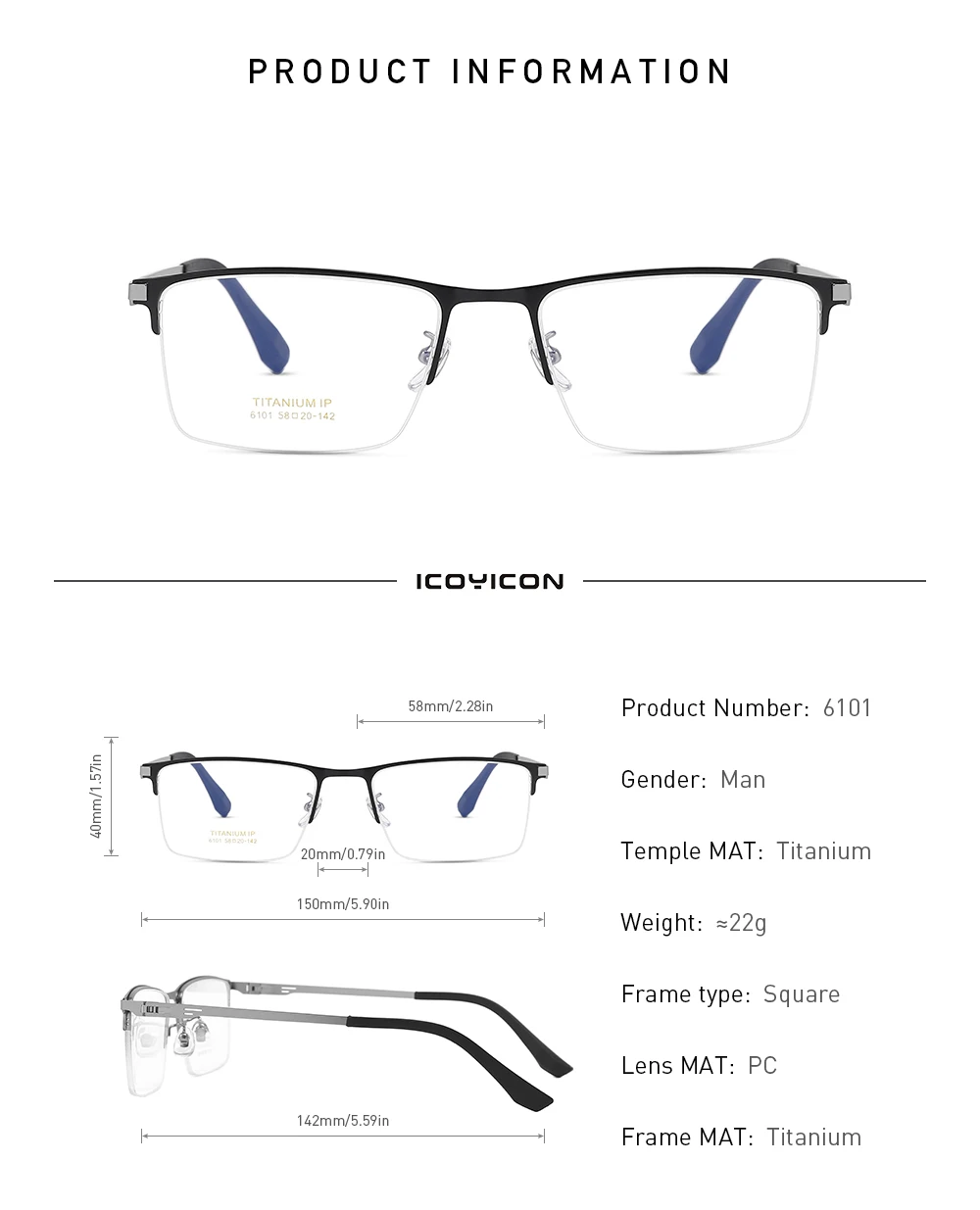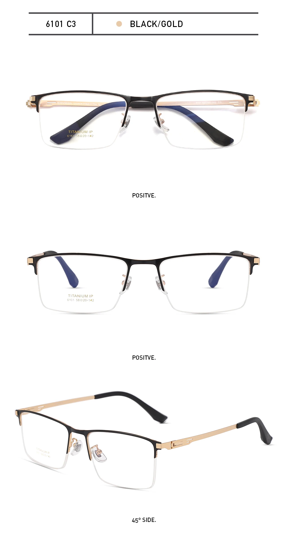 Очки без винтов титановые для мужчин, оптические аксессуары для коррекции зрения при близорукости, классические квадратные ультралегкие, для бизнеса, 6101
