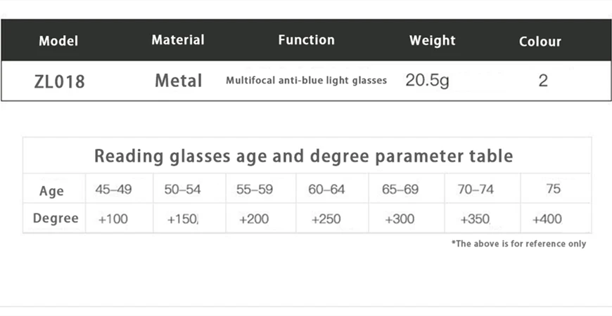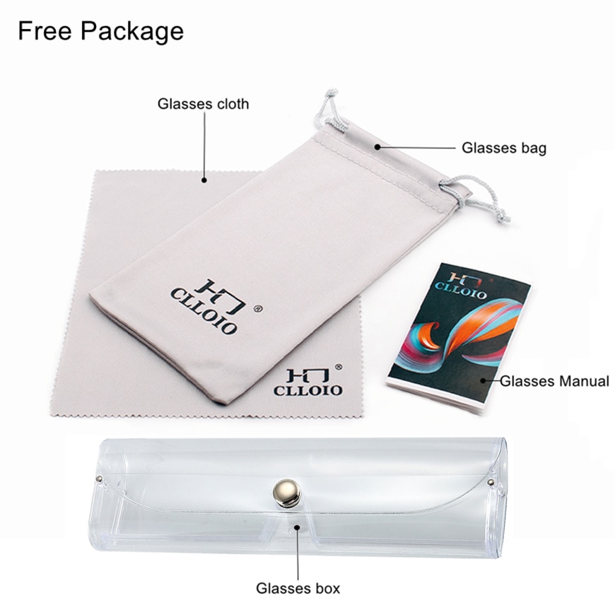 • 1 * очки для чтения, 1 * коробка для очков (подарок), 1 * сумка для очков, 1 * ткань для очков, 1 * Руководство для очков