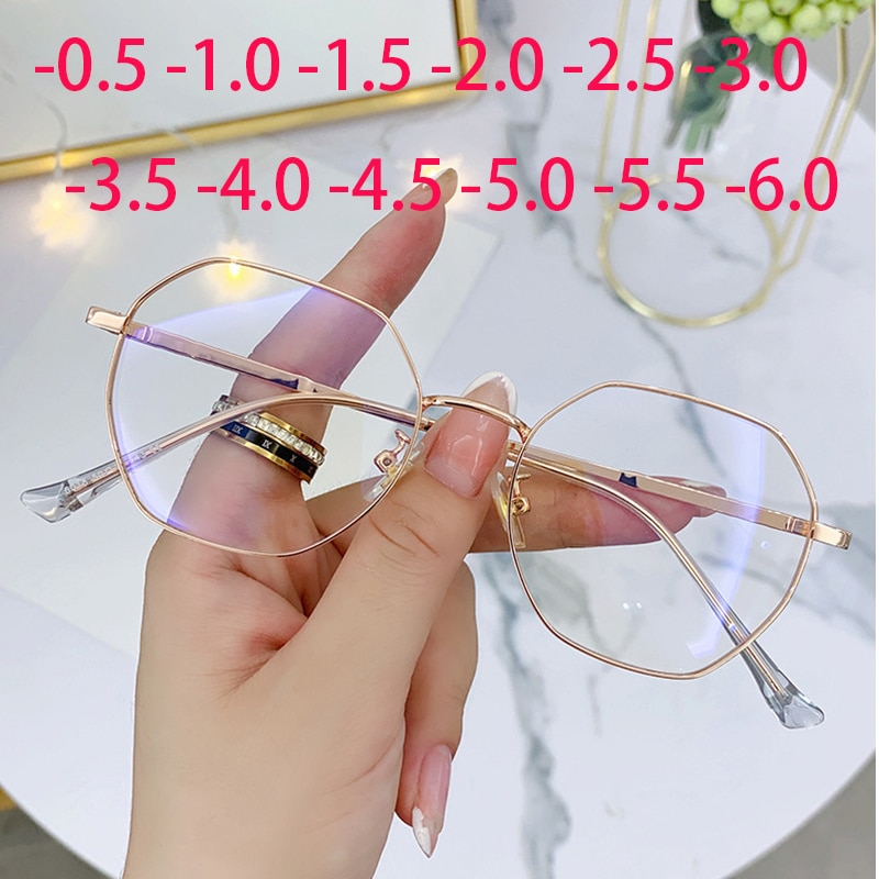 Очки для близорукости для мужчин и женщин, металлическая многогранная отделка, с диоптриями-0,5-1,0-1,5-2,0-2,5-3,0-3,5, ультралегкие очки для близорукости