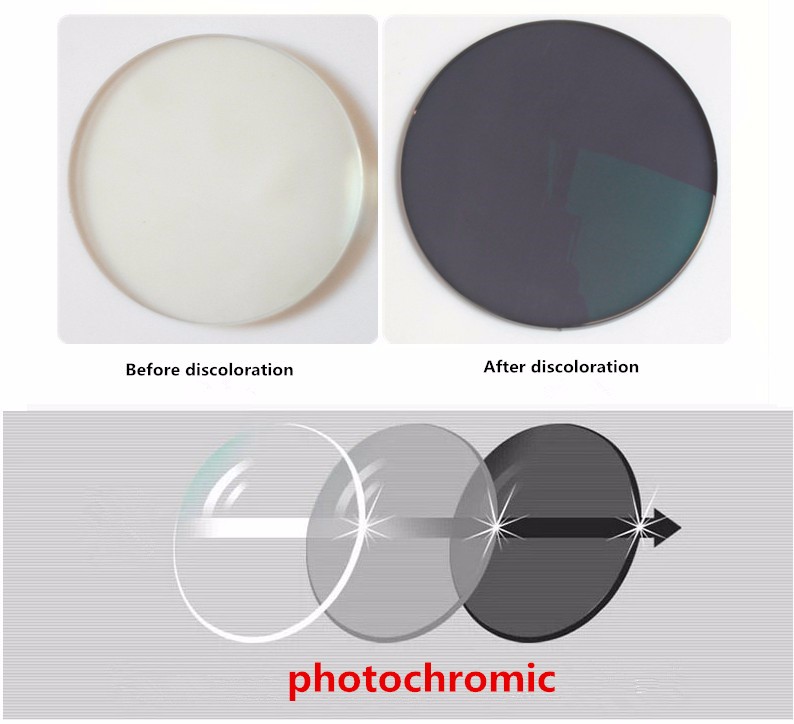 Фотохромные линзы также называют светильник-чувствительной линзы ". Стеклянные линзы добавляют Серебристые галогенные, но в настоящее время являются основным направлением фотохромные линзы из смолы, добавляя spiro и другие химические вещества в линзы из акриловой смолы, так что оригинальные бесцветные и прозрачные линзы, яркий светильник станет цветными линзами для защиты, поэтому подходит для использования в помещении и на улице.