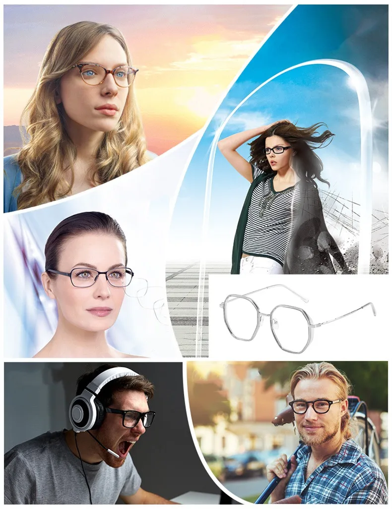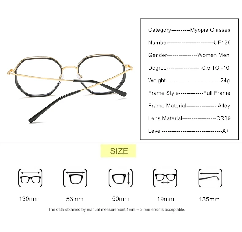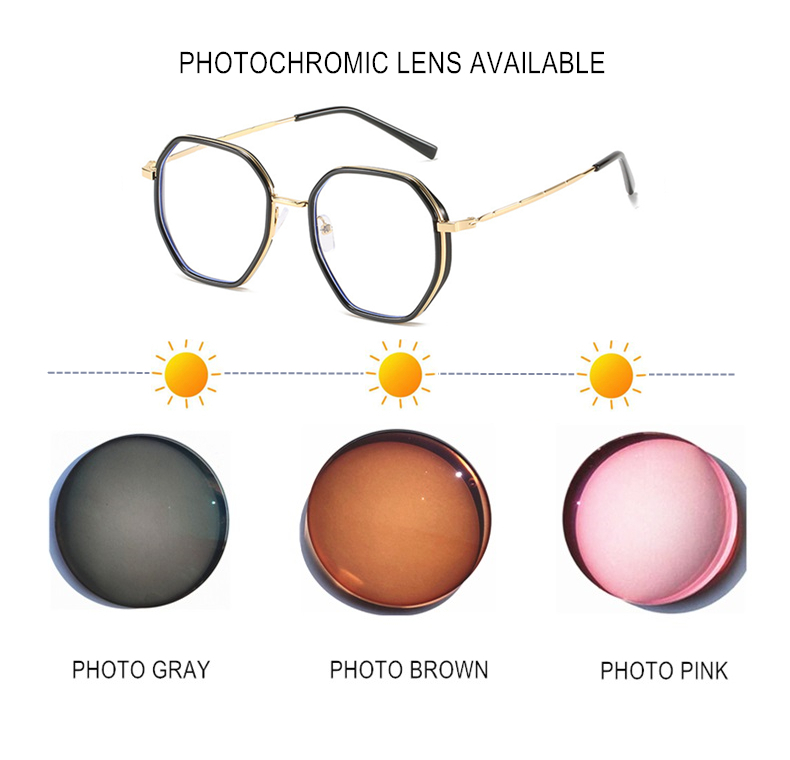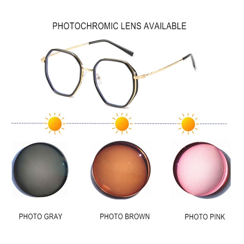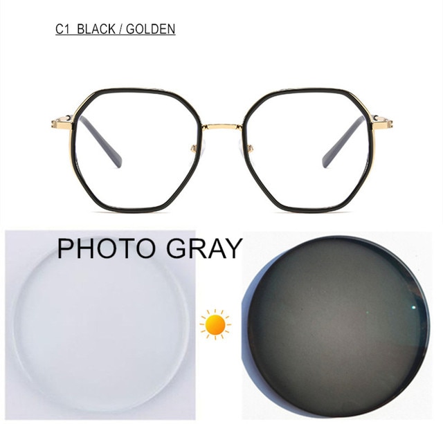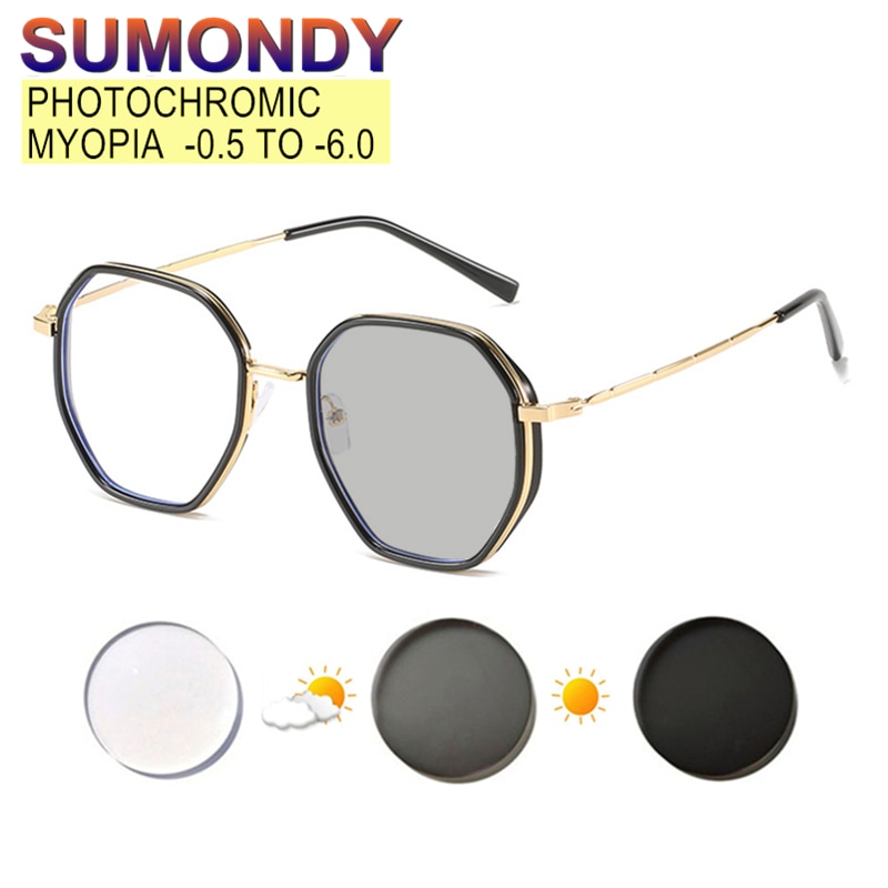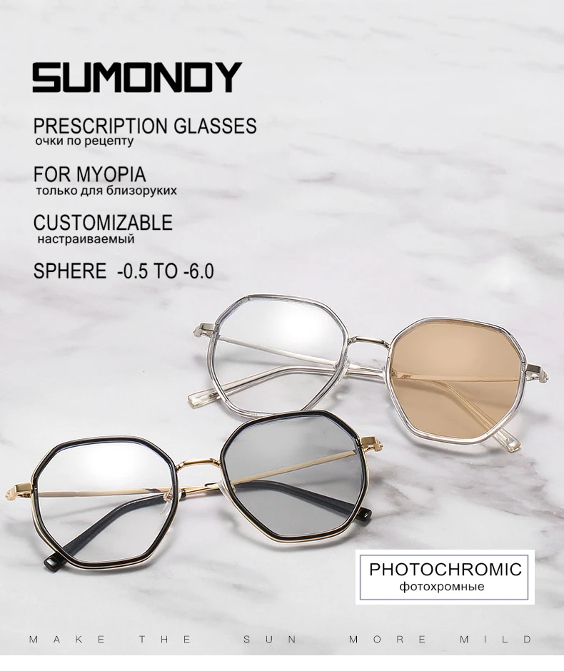 Очки для близорукости с диоптриями от-0,5 до-6.0 при женщин и мужские, полигональная рама, линзы для фотохромные, близорукие очки настраиваемый для астигматизма UF126