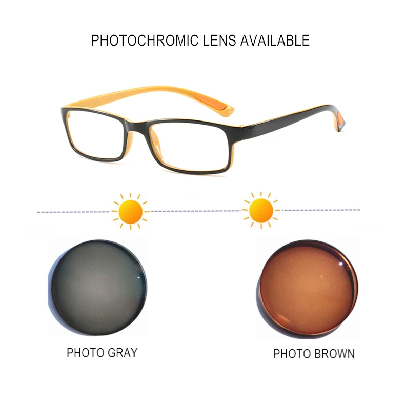Что касается фотохромных линз, они будут прозрачными и бесцветными в помещении или в пасмурный день, но они будут менять цвет на улице и на солнце, чтобы защитить ваши глаза от яркого света.