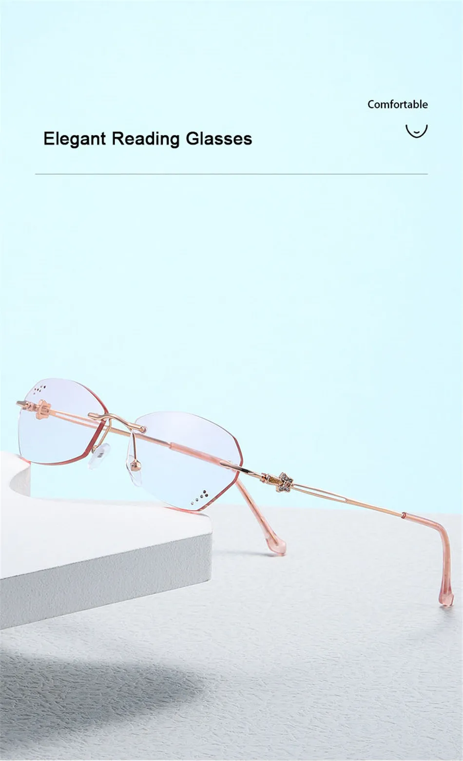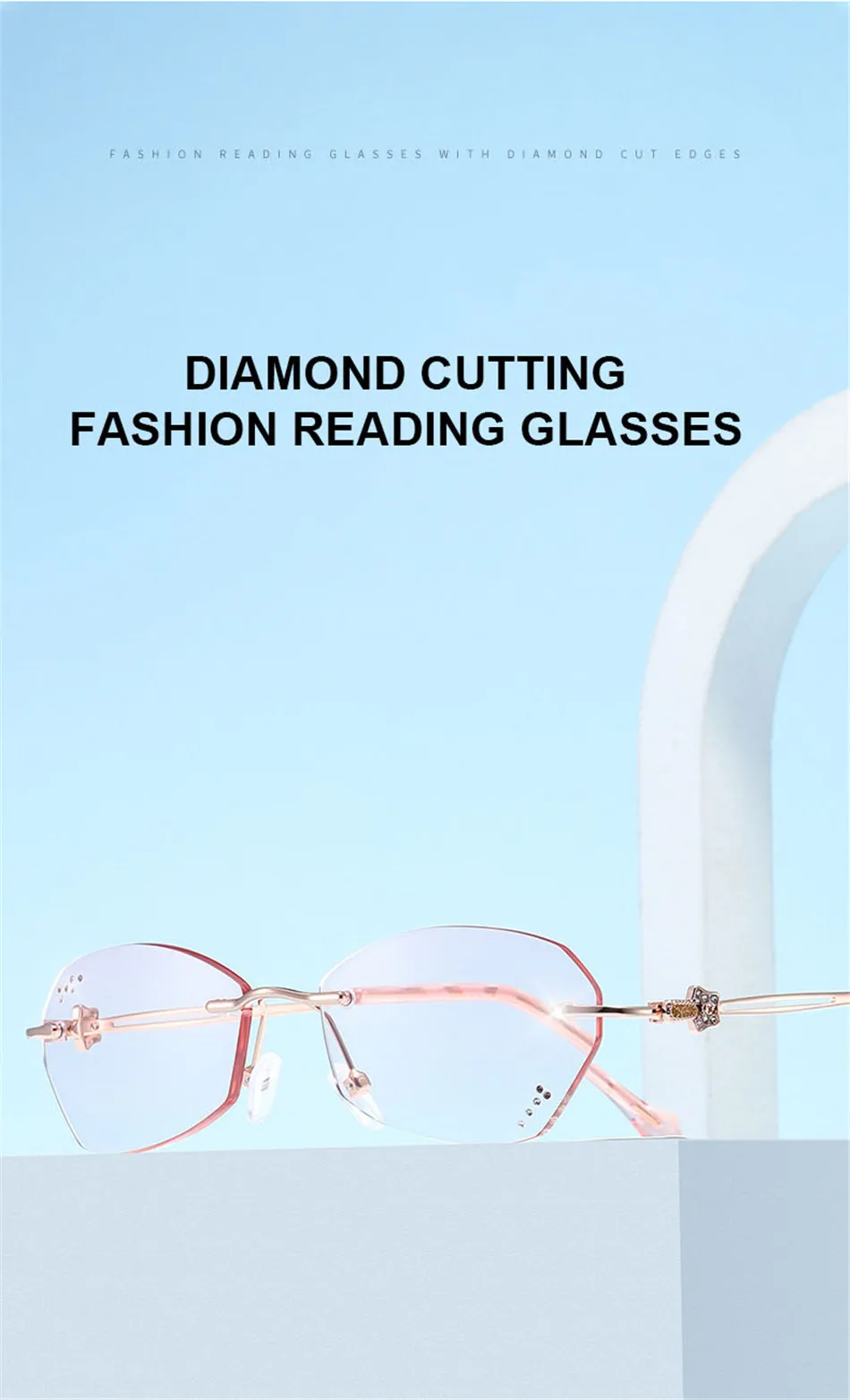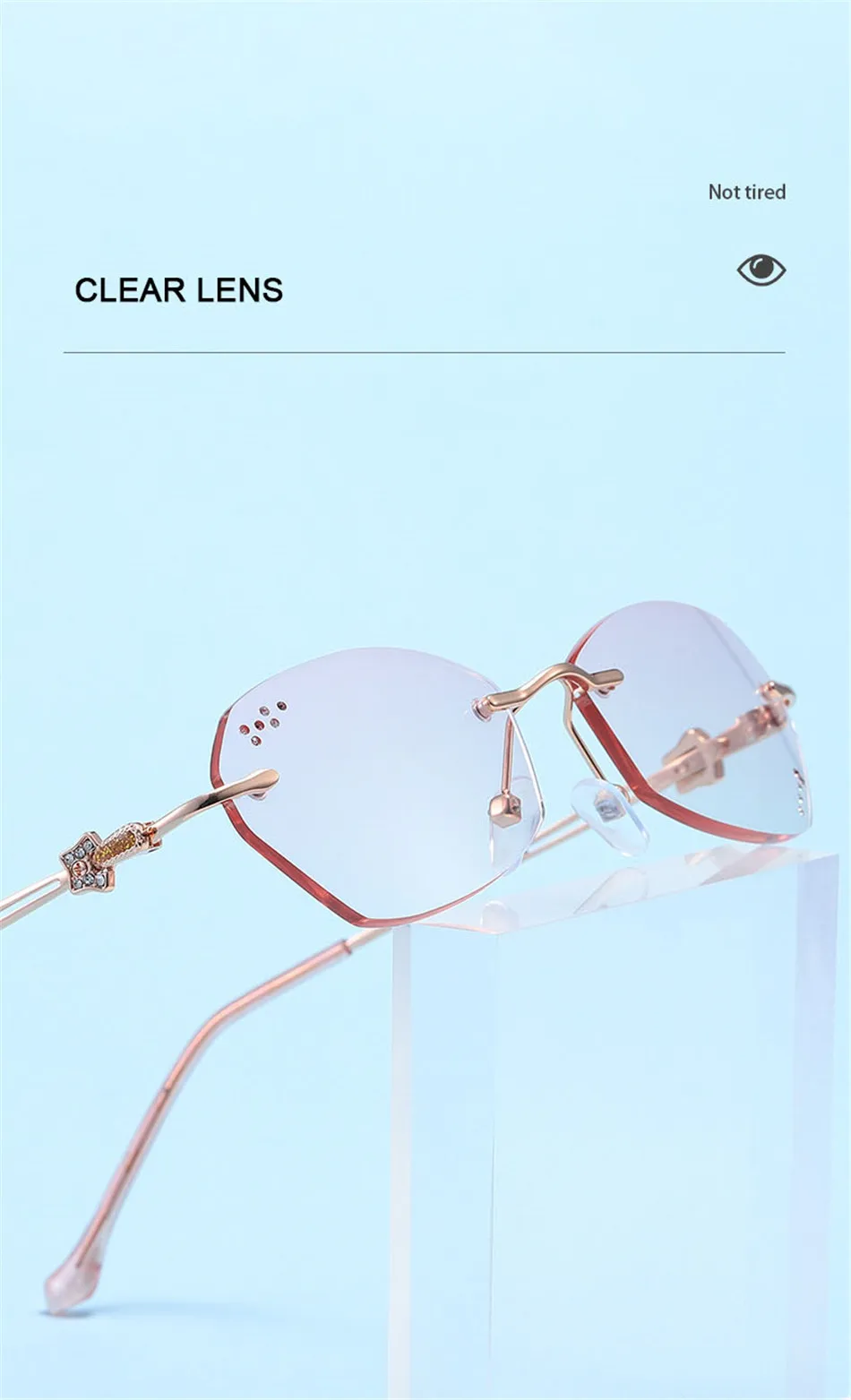 Очки для чтения Ahora женские без оправы, аксессуар для чтения с алмазной резкой, с блокировкой яркости, компьютерные очки для дальнозоркости, 2023