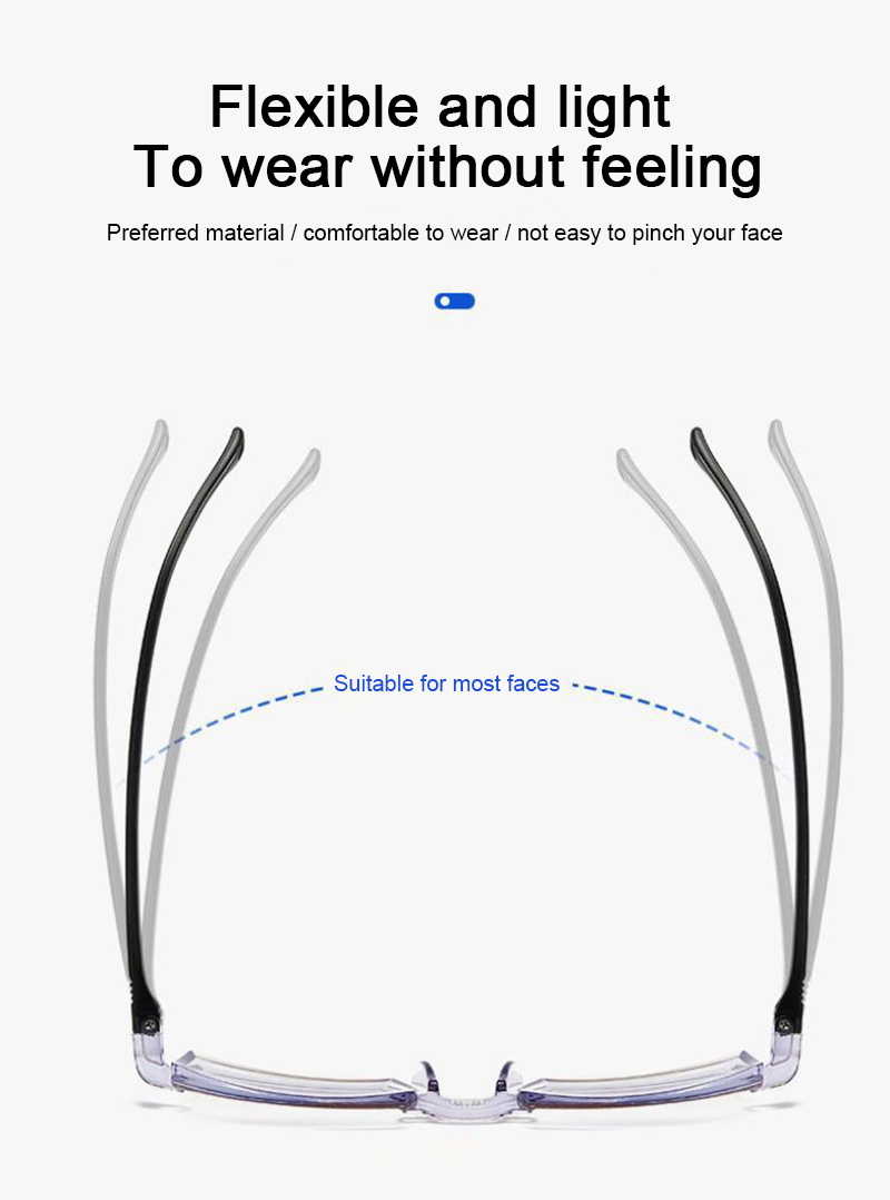 【 Высокопрочные легкие материалы 】мы решили изготовить нашу коллекцию из высококачественной японской TR90, используемой в аэрокосмической технологии, так как она имеет самое высокое соотношение прочности и веса любого металла. Это также означает, что наши очки весят только 17,05 граммов. Вы можете носить их в течение нескольких часов и забыть о том, что у вас есть.