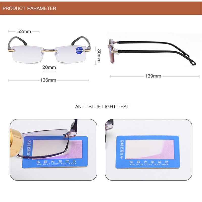 Очки для чтения без Оправы унисекс, с фильтром синего цвета, для работы за компьютером, для чтения при пресбиопии, для пожилых людей
