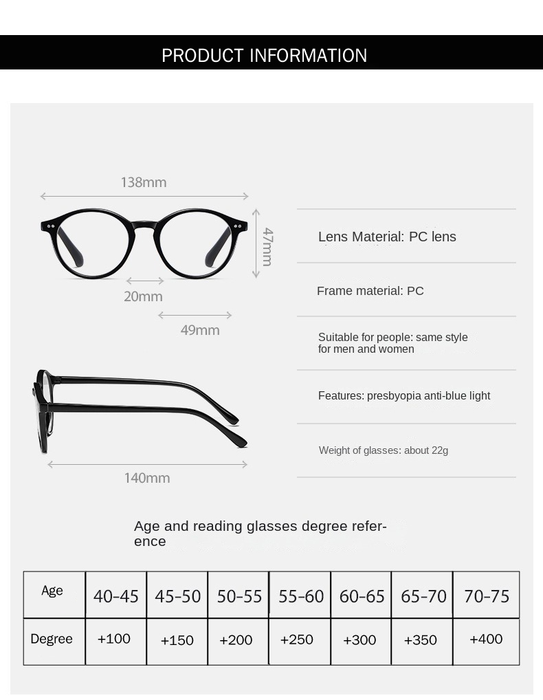 READING GLASSES Anti Blue Blocking Reading Glasses Men Women Hyperopia Reader Vintage Round Eyeglasses