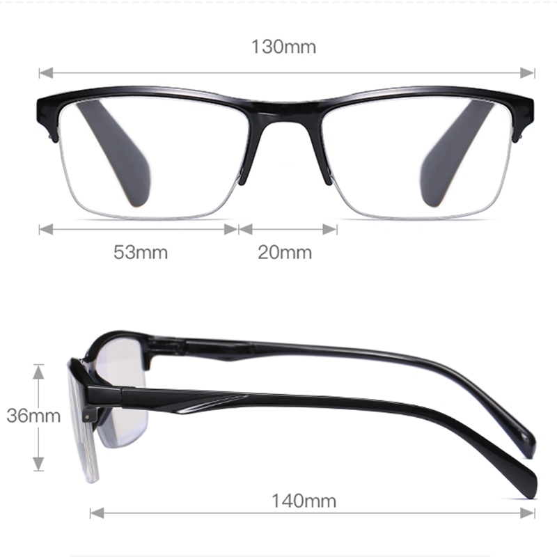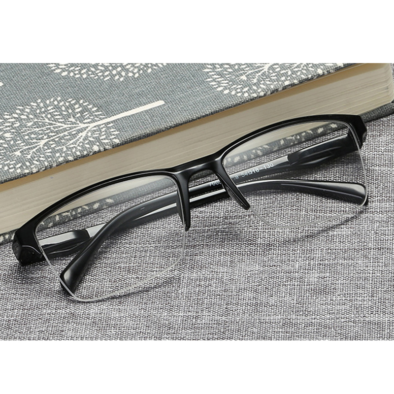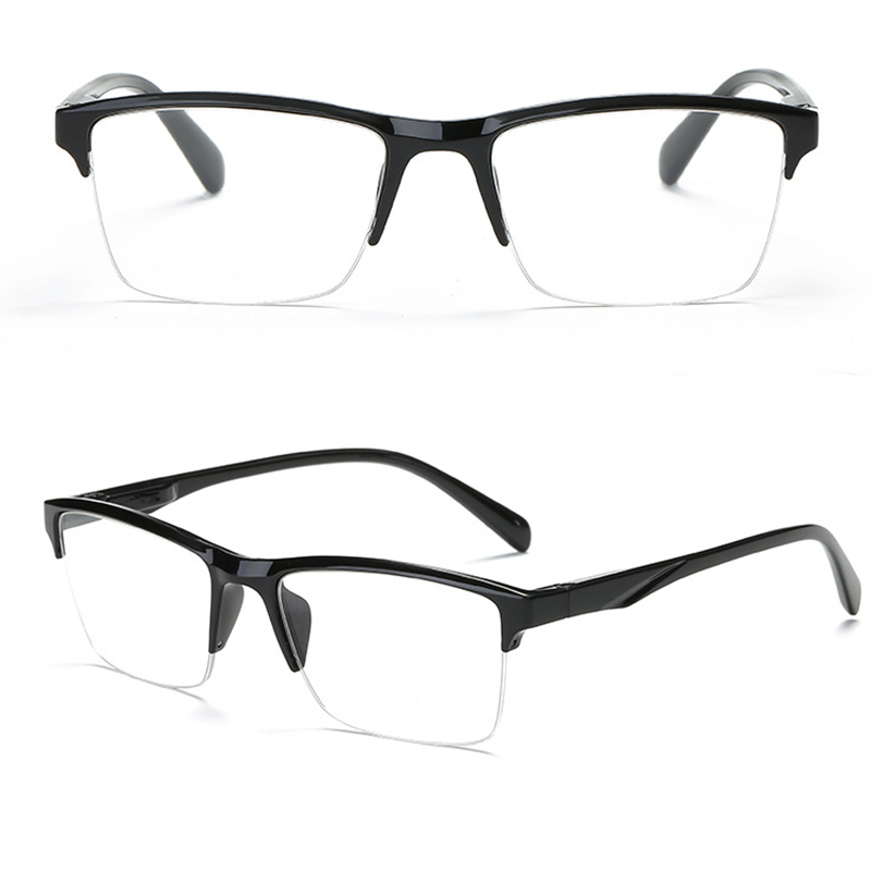 Квадратные полуоправы для чтения, мужские прозрачные увеличительные пресбиопические очки, черные + 75 125 175 225 275 325 375
