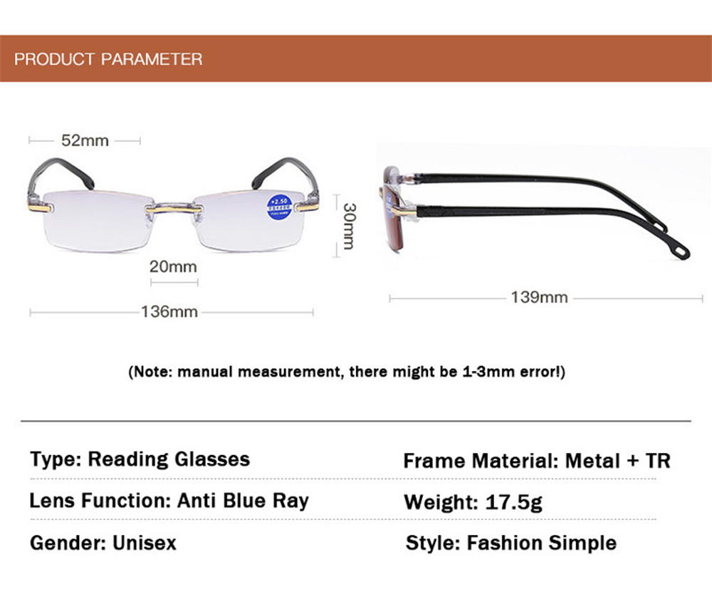 Очки для чтения NONOR для мужчин и женщин, антибликовые, при пресбиопии, без оправы, винтажные, с диоптриями + 1,0 1,5 2,0 2,5 3,0 3,5 4,0