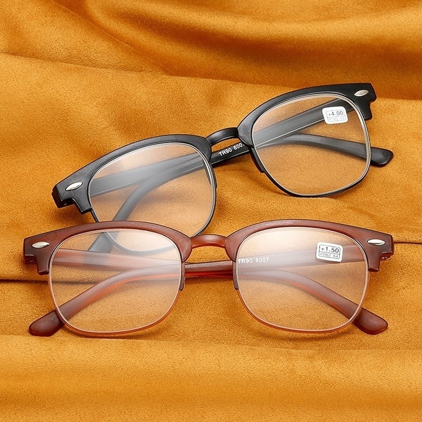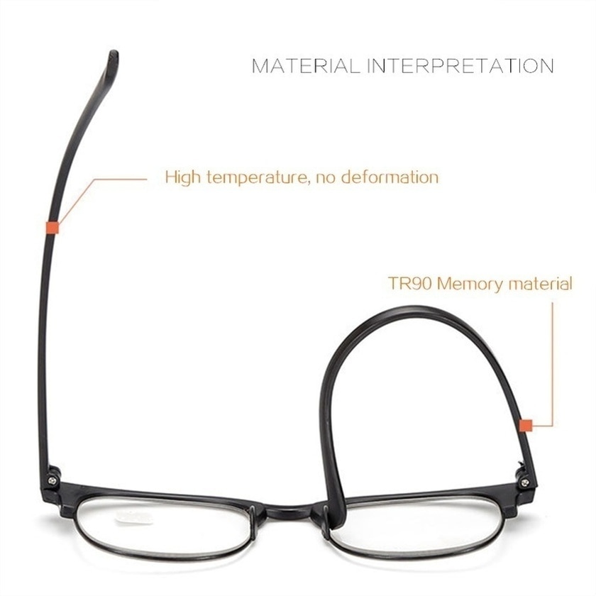 Очки для чтения при пресбиопии с полуободковой оправой для мужчин и женщин, ультралегкие очки для защиты от усталости, TR90, зеркальные очки от + 1,0 до + 4,0