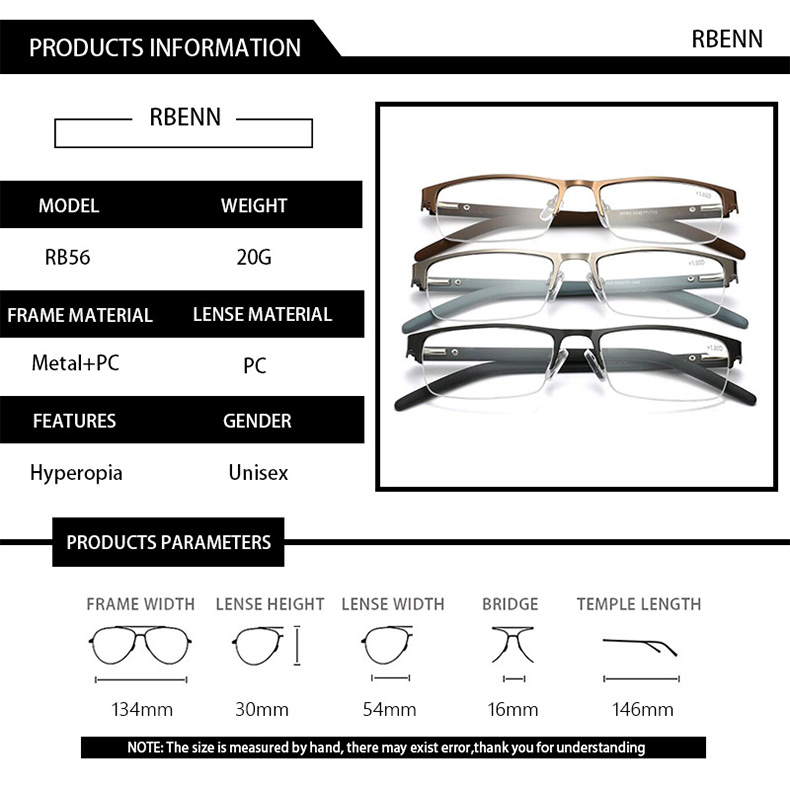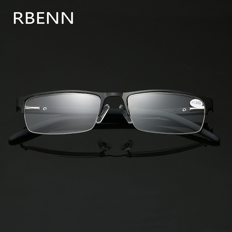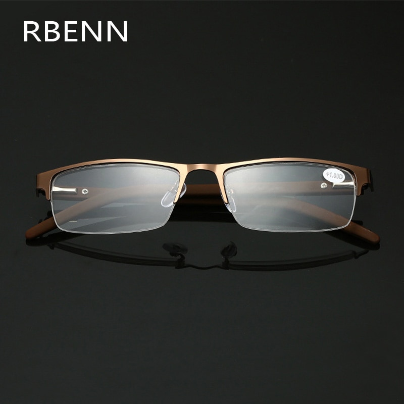 RBENN металлическая оправа очки для чтения мужские высококачественные полуоправы бизнес пресбиопические очки для чтения + 0,5 0,75 1,25 1,75 2,25 2,75 3,25 3,75 4,5 5,0 6,0