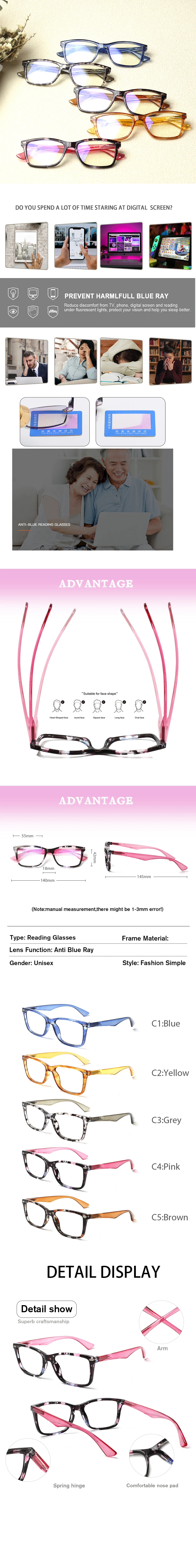 • Эти очки для чтения в прямоугольной оправе стильные и элегантные, с легкой оправой и отличными носоупорами, которые не создают неудобного сжатия, идеально подходят для учебы в офисе, повседневного чтения и многого другого.
