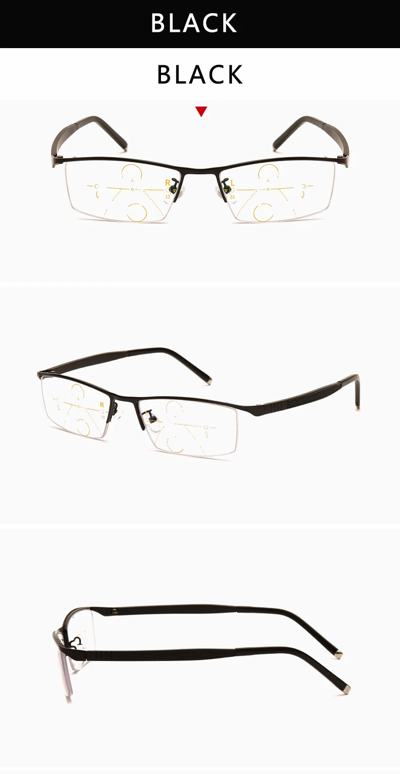 Очки для чтения с интеллектуальным постепенным увеличением, Мультифокальные, с защитой от синего излучения, из нержавеющей стали