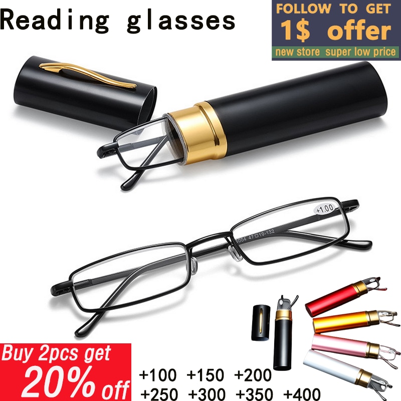 Очки для чтения с металлической оправой, ультра-яркие мужские и женские очки, портативные мини-очки для чтения при пресбиопии с коробкой, 2023
