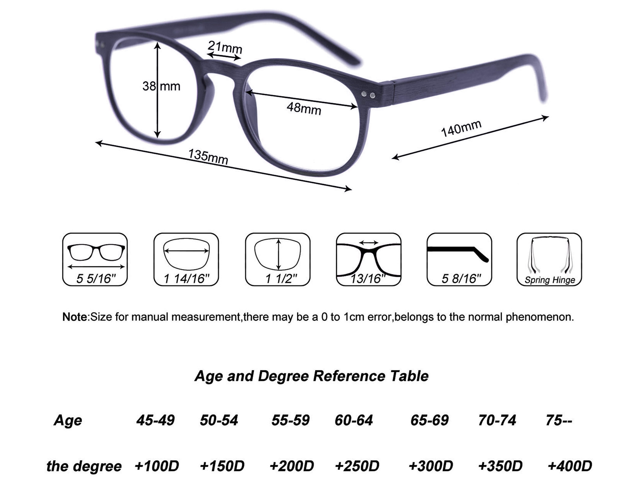 Очки для чтения с пружинным шарниром, с диоптриями от + 0,5 до + 5,0