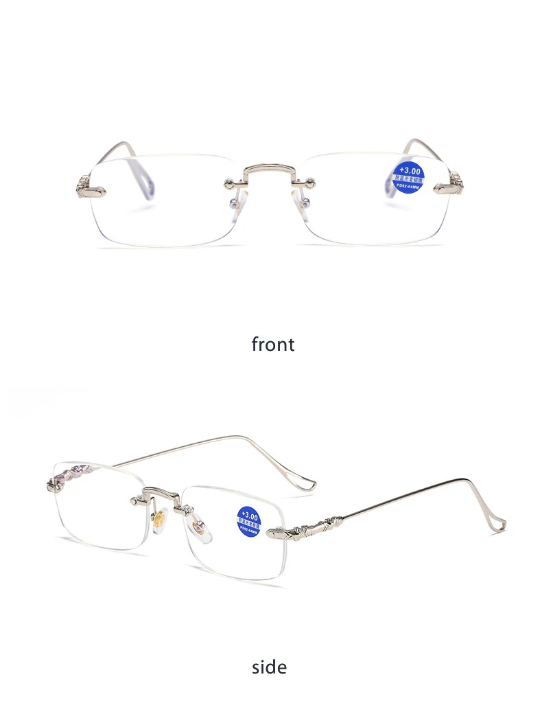 Очки для чтения с защитой от сисветильник для мужчин и женщин, металлические ульсветильник пресбиопические аксессуары без оправы, при дальнозоркости + 4,0