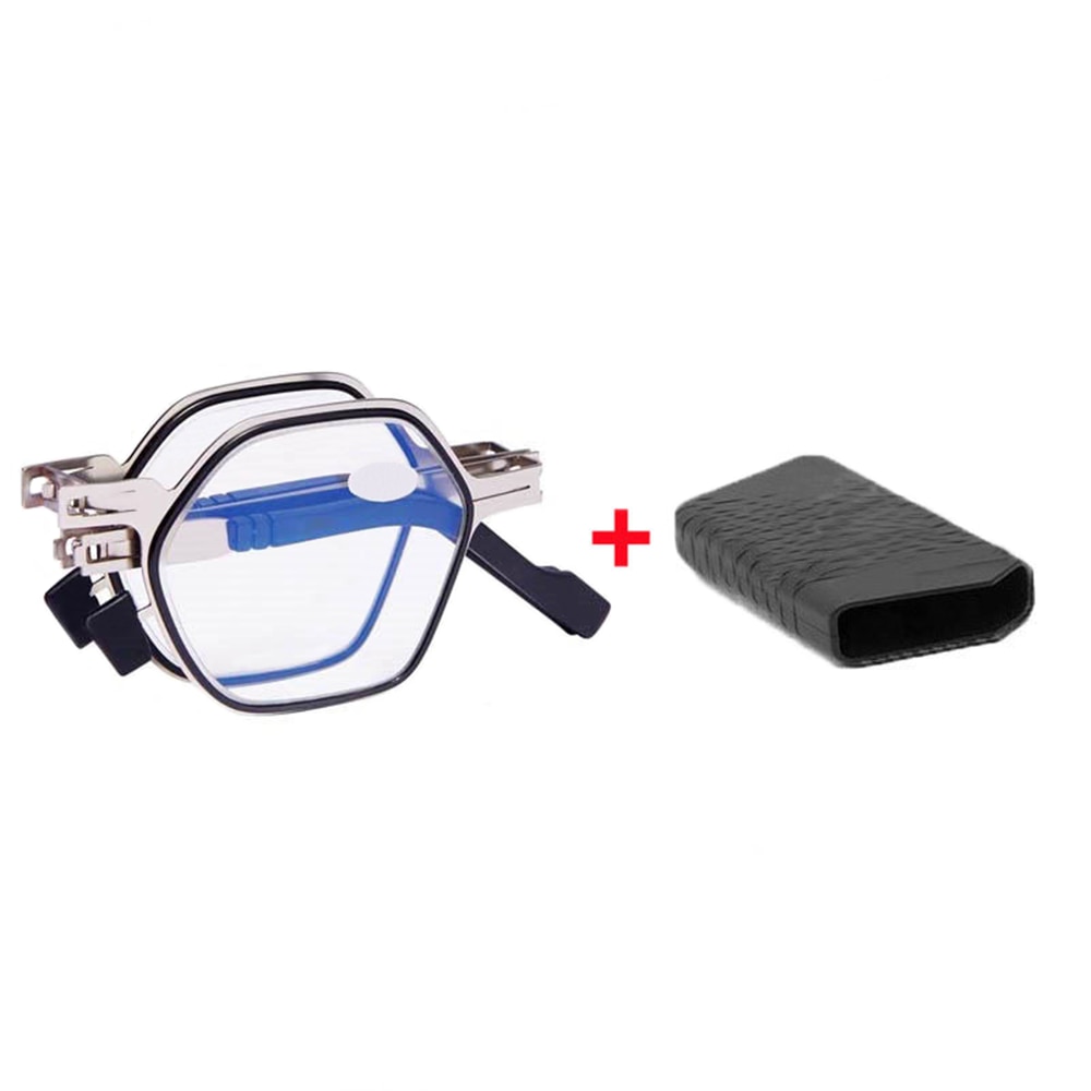Очки для чтения с защитой от сисветильник света для женщин и мужчин, металлические складные очки для дальнозоркости, многоугольная оправа, очки с чехлом + 1,0-+ 4,0