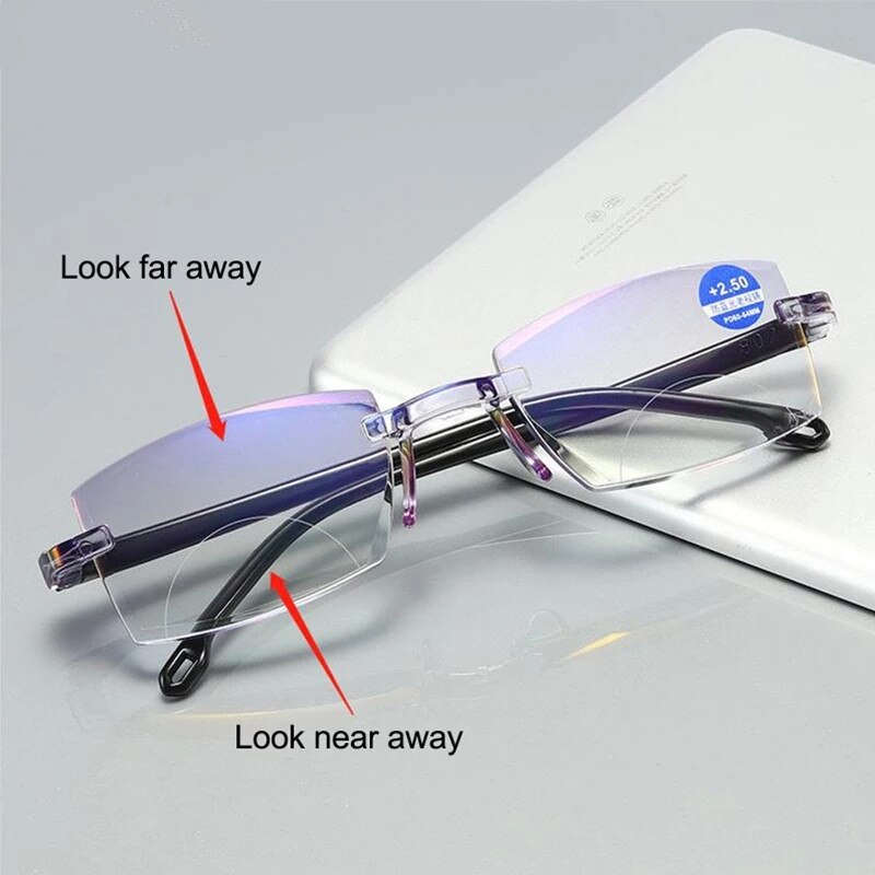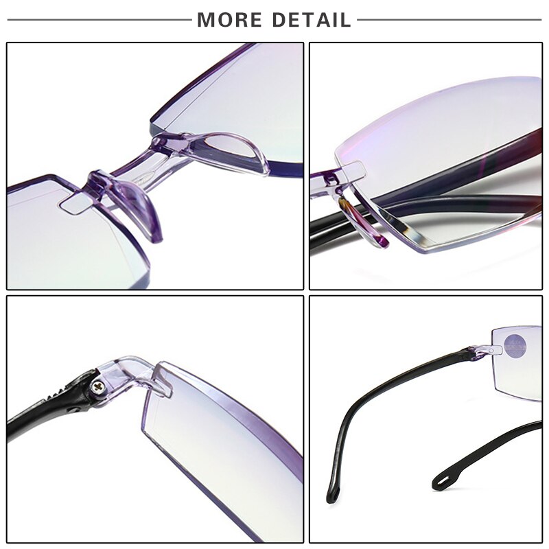 Мужские и женские очки для чтения без оправы с защитой от синего светильник увеличение очки дальнозоркости очки диоптрий + 150 + 200