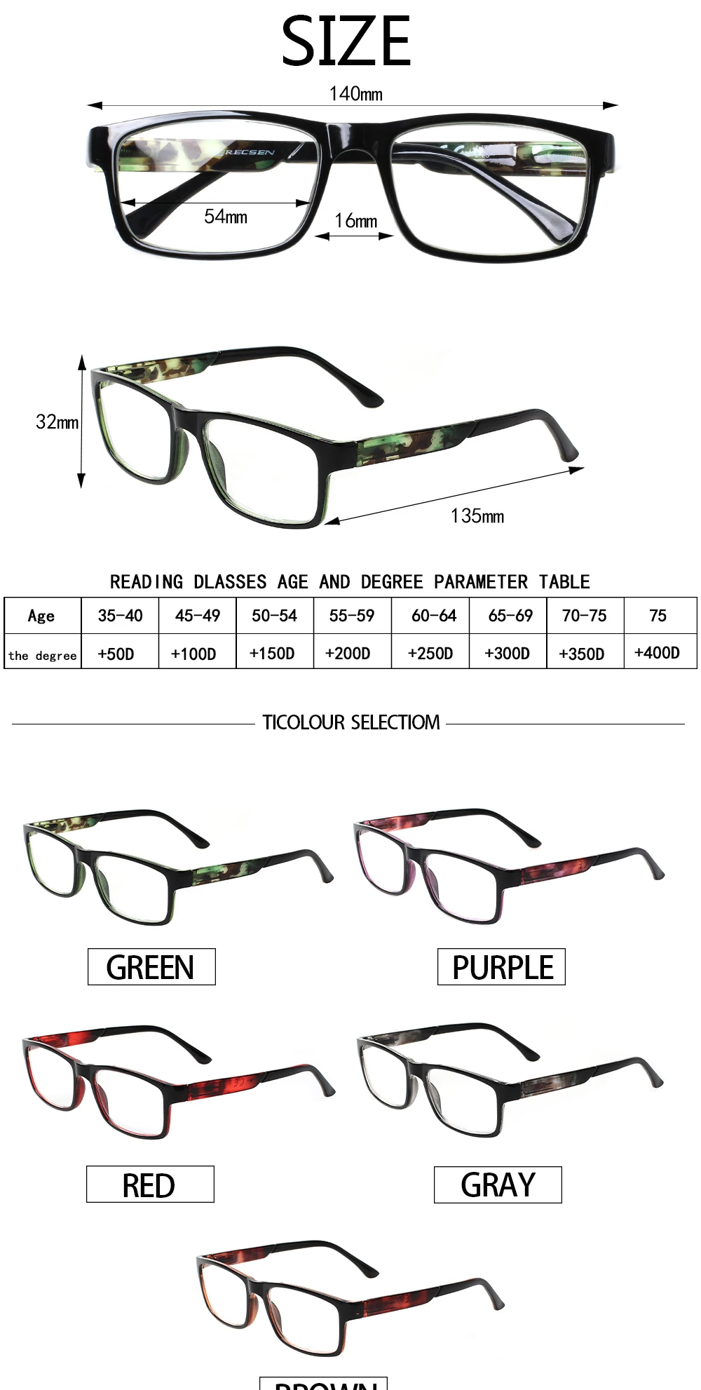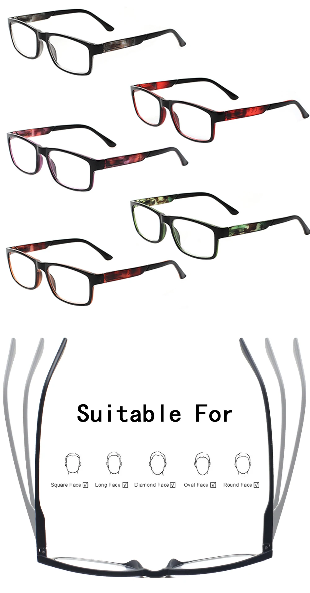 • Классические стильные очки для чтения в оправе с забавным и красочным дизайном. Универсальный размер подходит для большинства форм лица.
