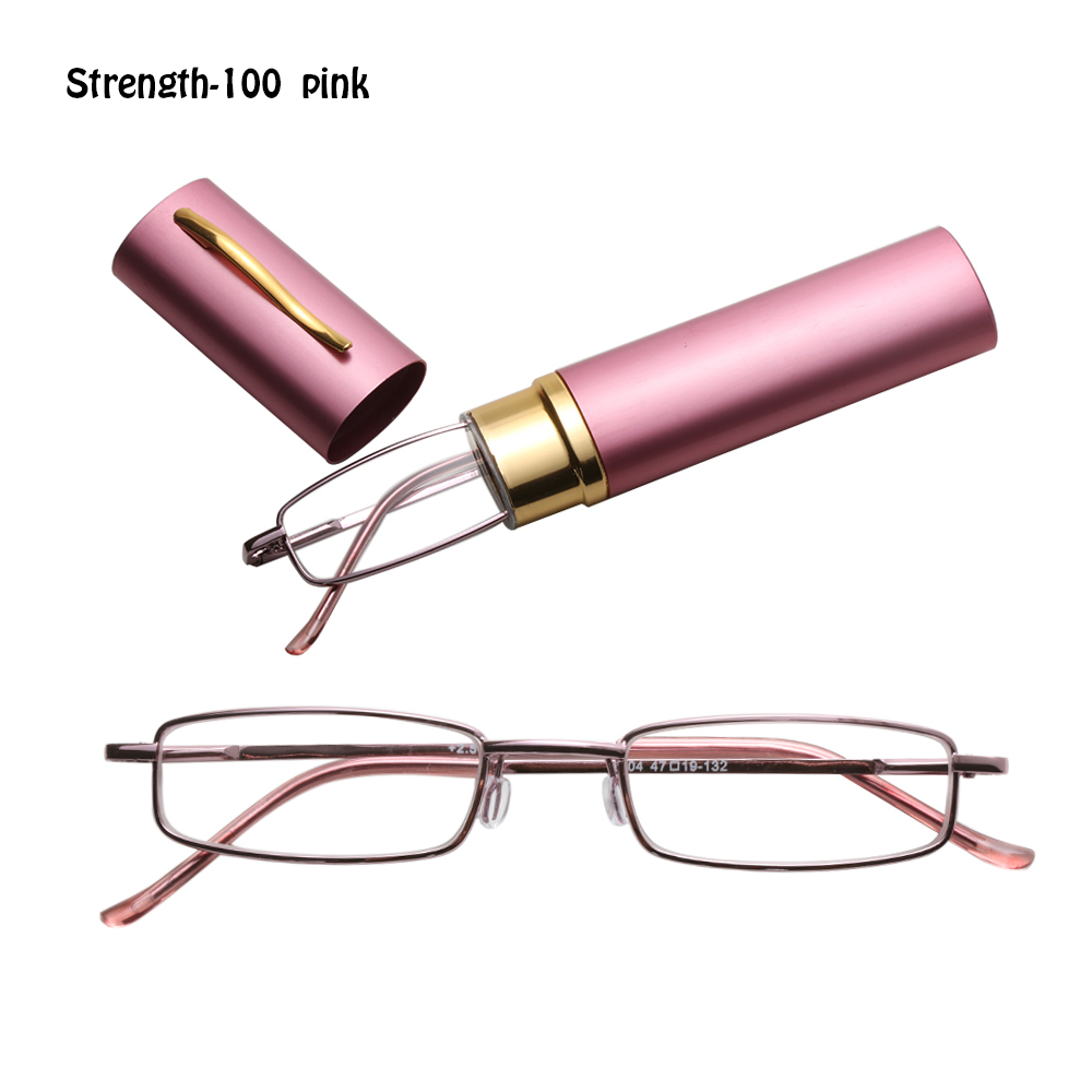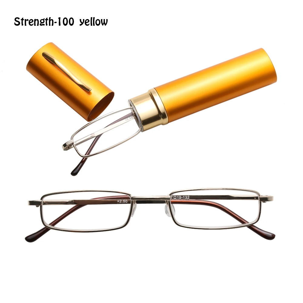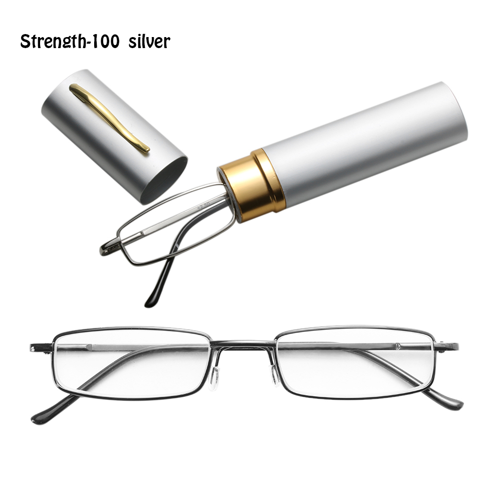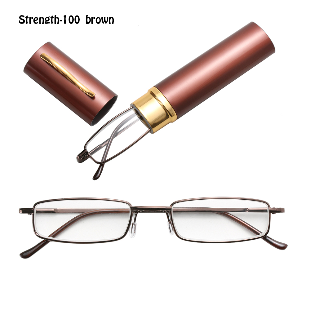 Очки для чтения унисекс с футляром для ручки, портативные очки для дальнозоркости, металлический чехол с пружинным шарниром, для ухода за зрением + 1,00 ~ + 4,00