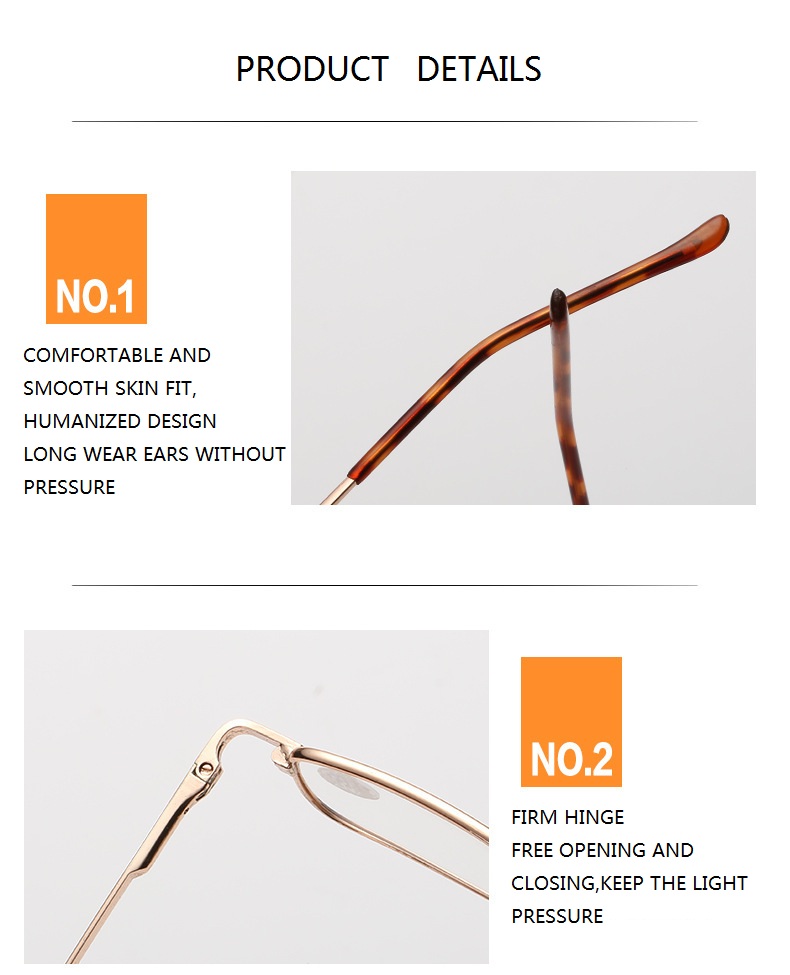 Features: High quality metal frame with spring hinge, perfected for personal fit