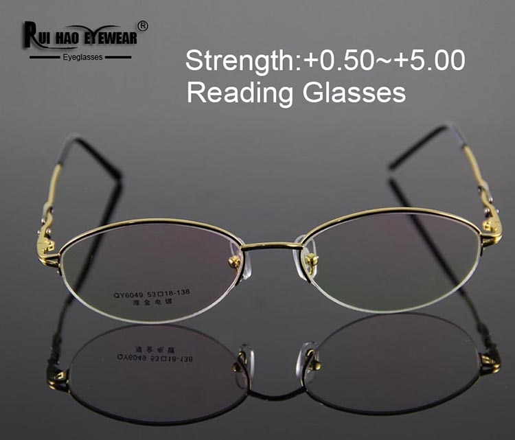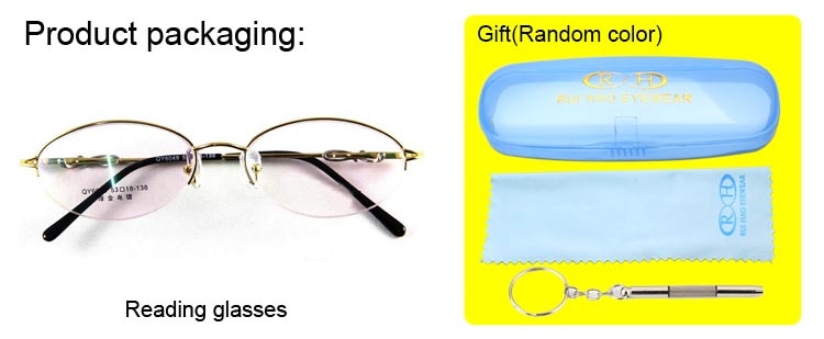 Номер модели: 6049 Бренд: RUI HAO EYEWEAR Подходит для: пожилых людей и гиперпиков Материал оправы: сплав Цвет линз: Прозрачный Металл линзы: линзы из CR-39 смолы