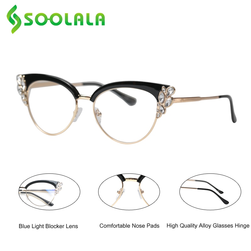 Очки для чтения женские SOOLALA, кошачий глаз, стразы с защитой от сисветильник света, от + 0,5 до 4,0