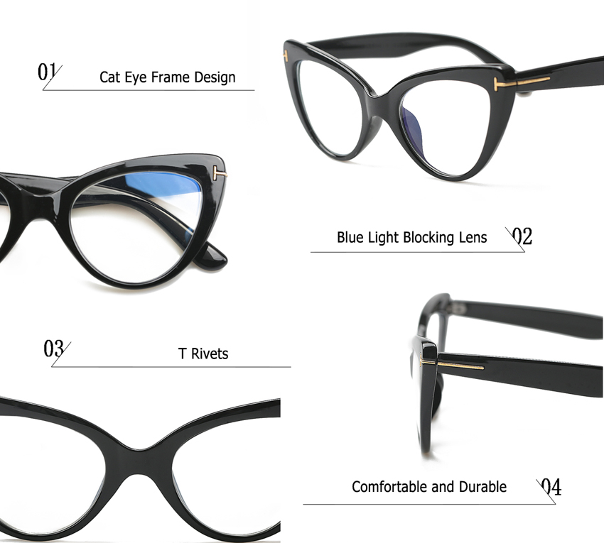 • -Высококачественная оправа кошачий глаз и прозрачные линзы