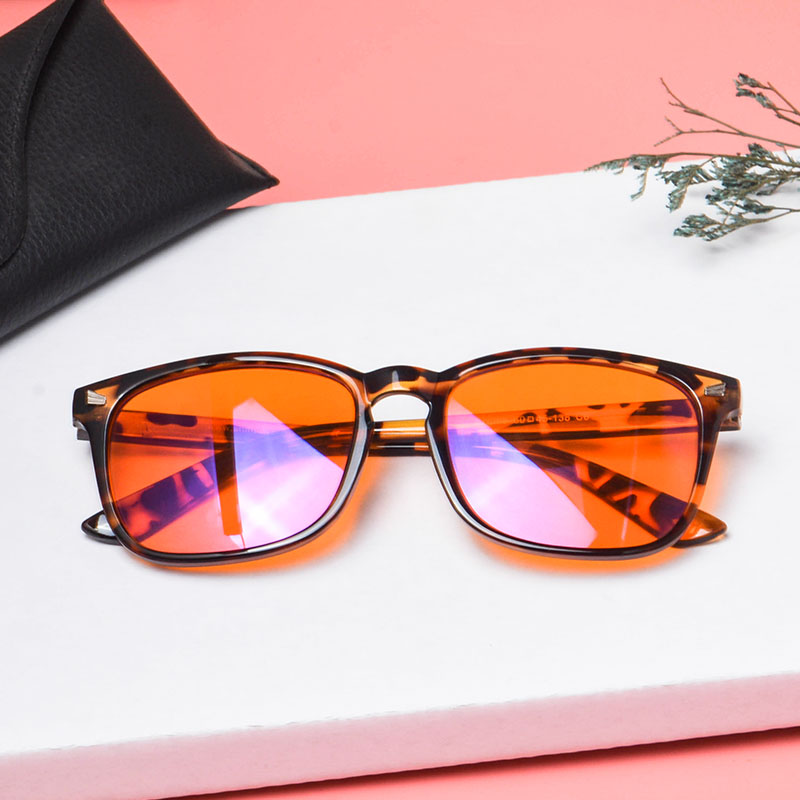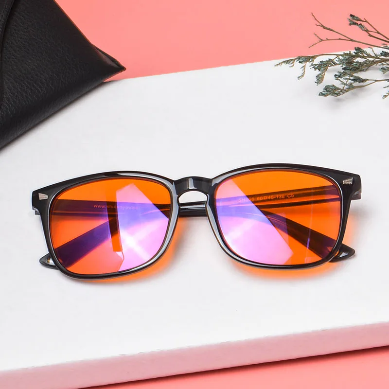 Модные женские винтажные очки # оранжевые линзы # прозрачные синие светильник по рецепту