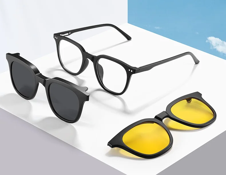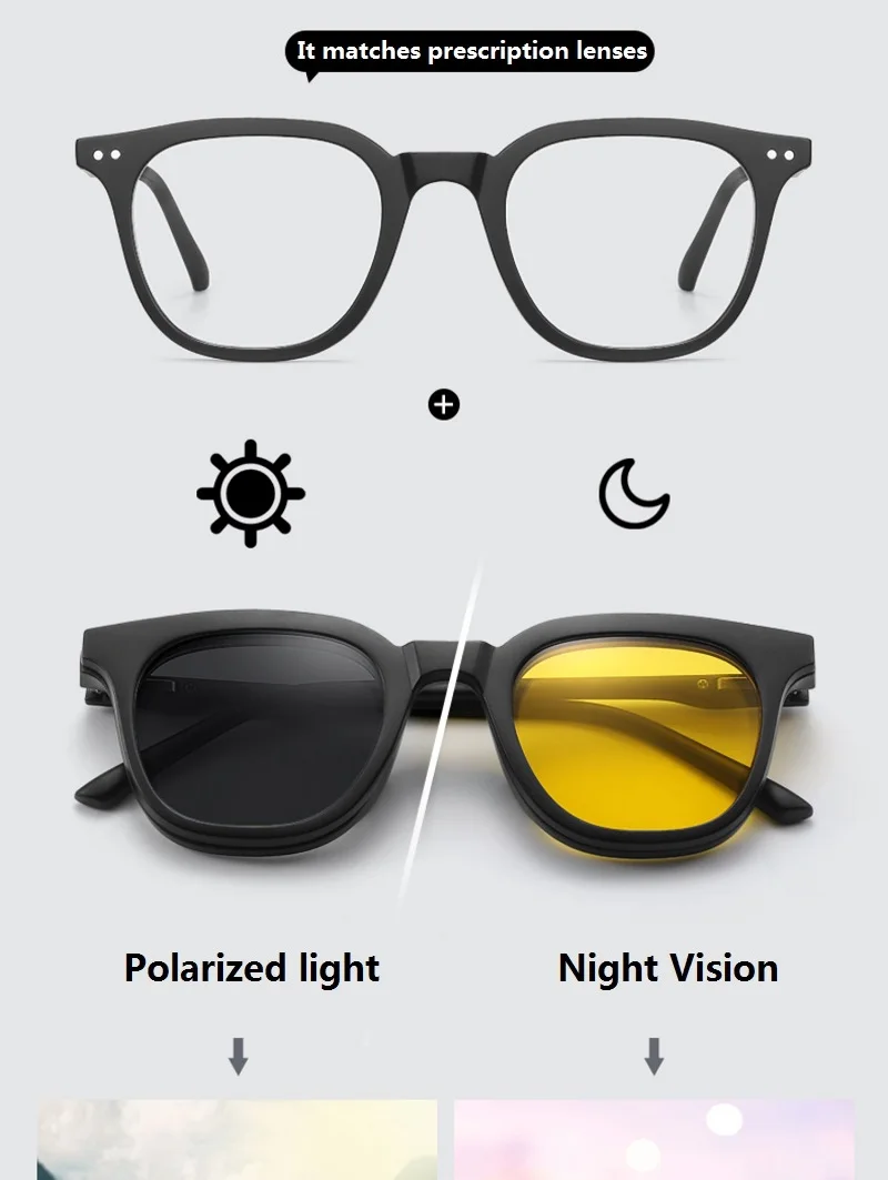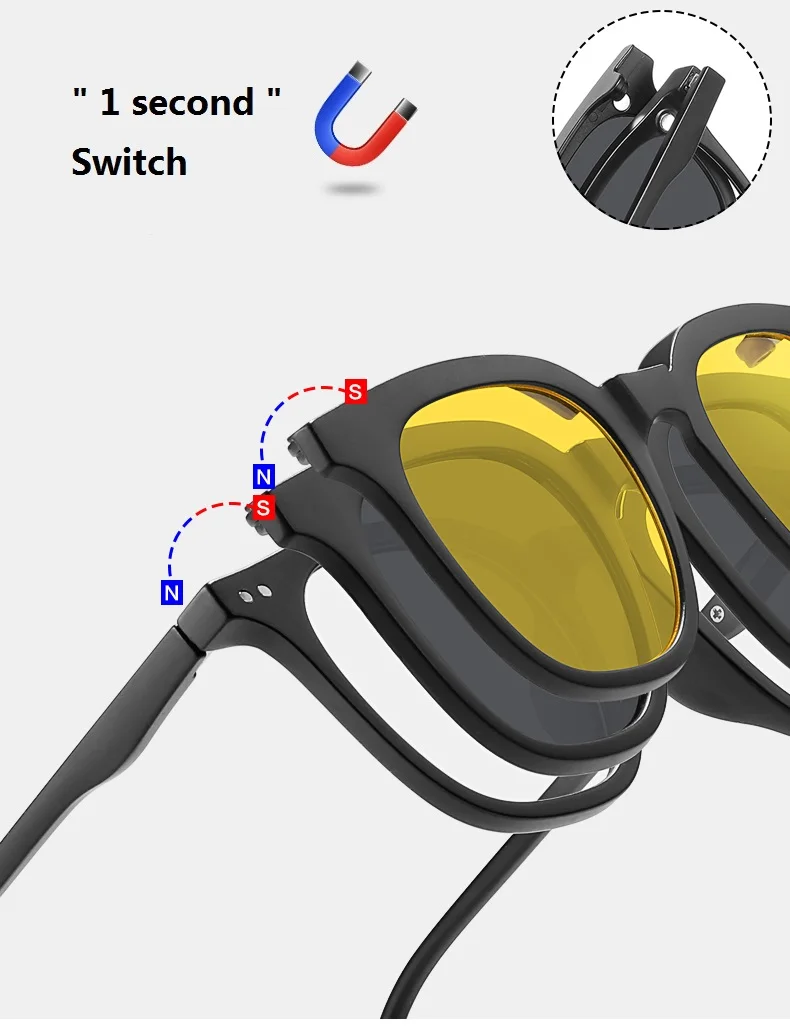 Ацетатные очки Мужские поляризационные зеркальные солнцезащитные очки для близорукости Специальные полуоправы Очки 3-в-1 Клип Поляризованный Ночной прицел 2023 Очки Оптические по рецепту