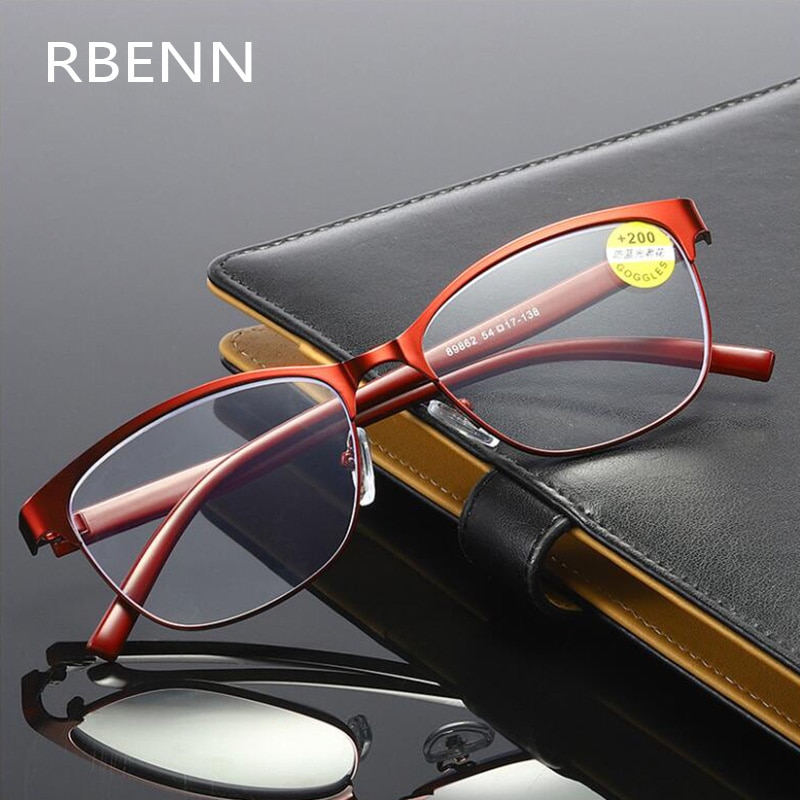 RBENN Ретро Металлические очки для чтения «кошачий глаз» женские синие светильник с блокировкой пресбиопии очки с диоптрией + 1,0 1,5 2,0 2,5 3,0 3,5