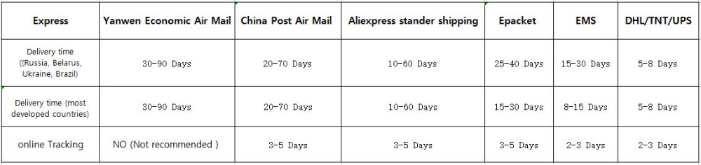 Если сумма вашего заказа> $145. Вы можете воспользоваться Экспресс-сервисомБесплатно(DHL,TNT,E-ems и так далее), около 5-8 дней, вы можете получить ваш продукт.