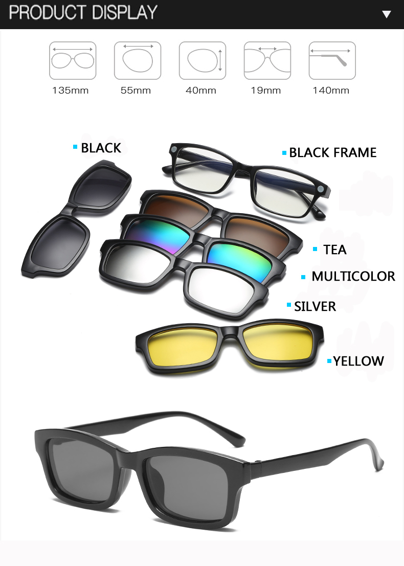 5 Lenes магнитные солнцезащитные очки с клипсой Polaroid зеркальные магнитные солнцезащитные очки на клипсах мужские поляризованные очки по рецепту близорукости