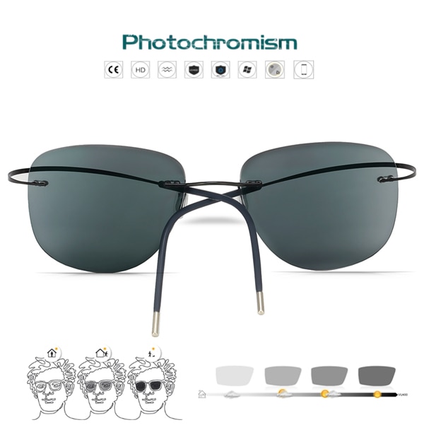 Очки солнцезащитные мужские с диоптриями, фотохромные авиаторы без оправы, в титановой оправе