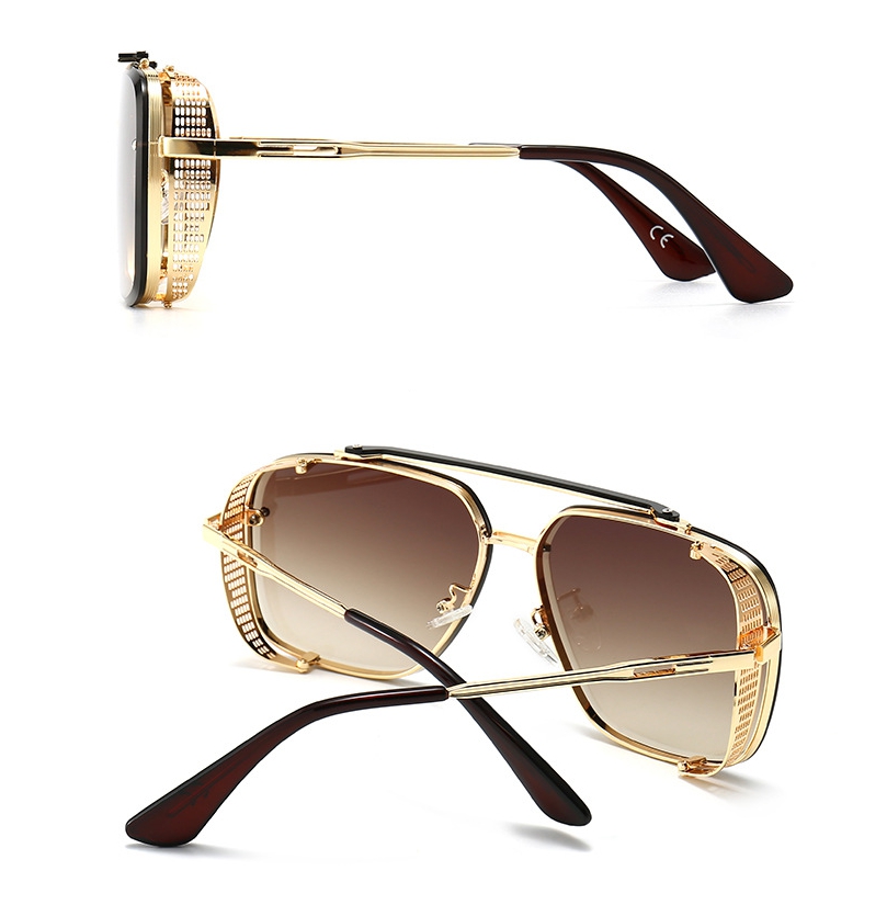 Очки солнцезащитные мужские/женские в металлической оправе, квадратные очки-люкс, Модные Винтажные Очки с защитой UV400, 46385