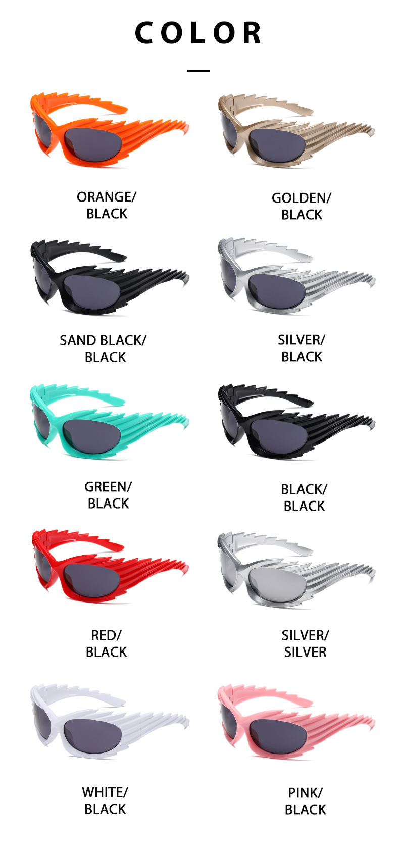 Очки солнцезащитные овальные большого размера с шипами и защитой UV400