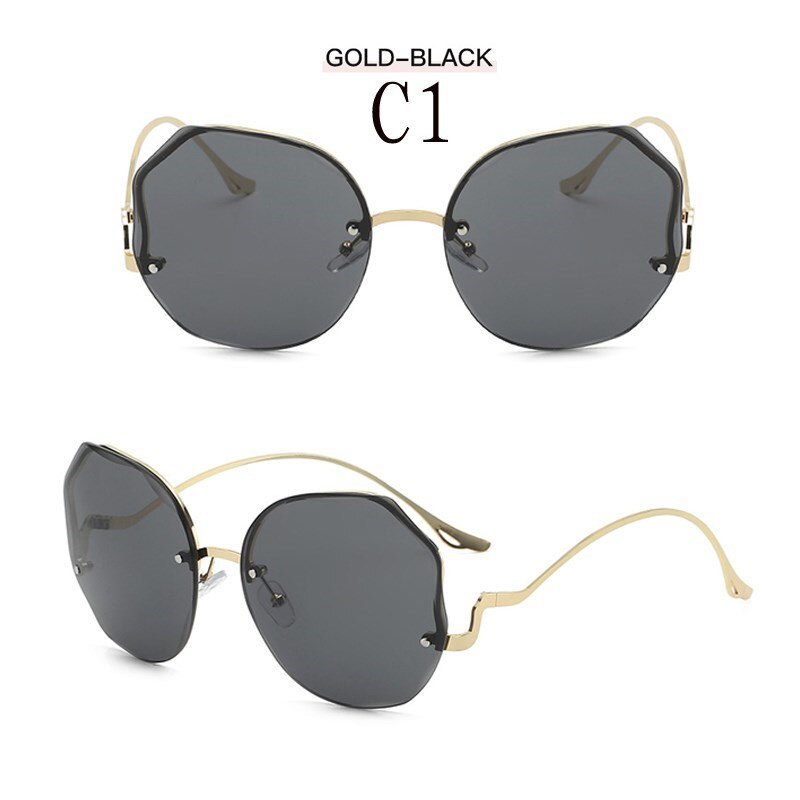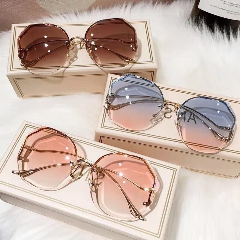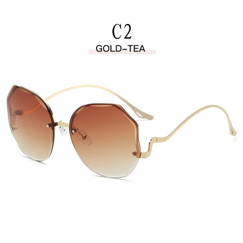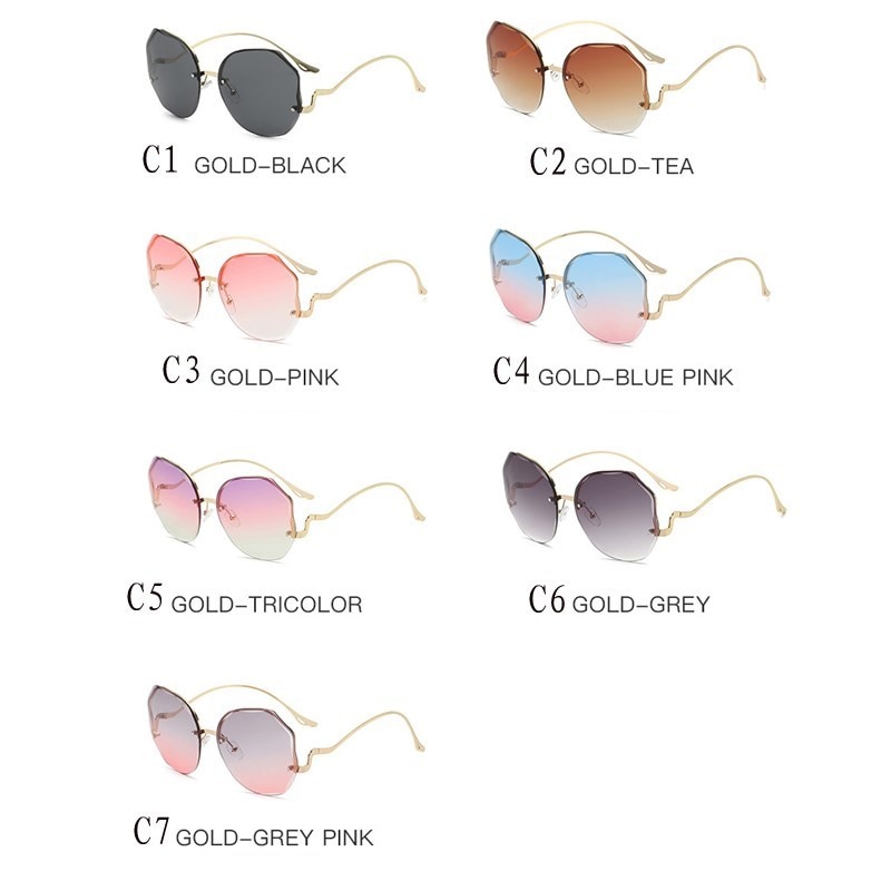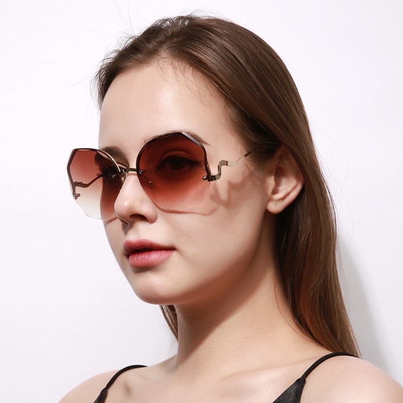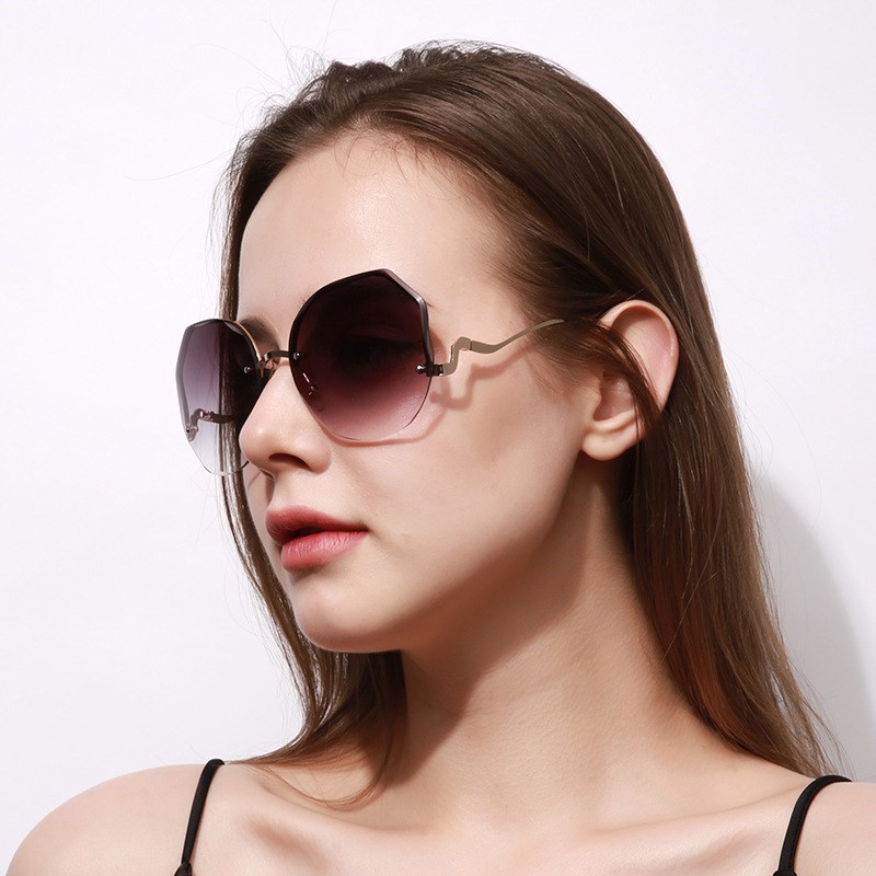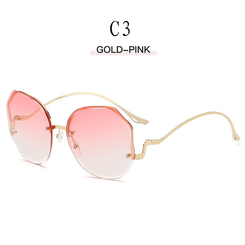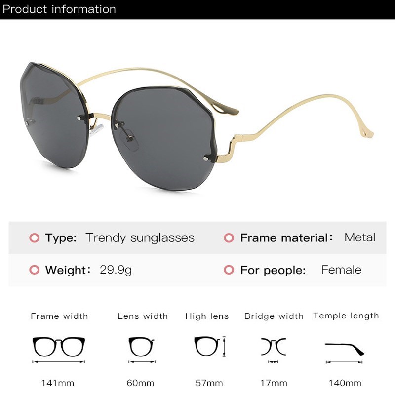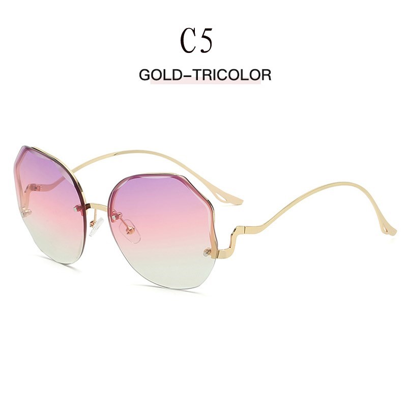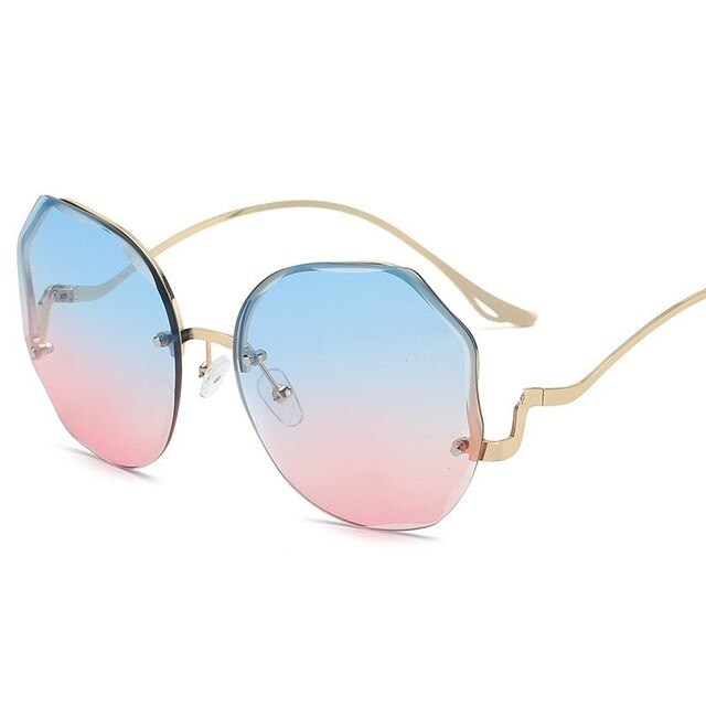 Очки солнцезащитные женские круглые без оправы, брендовые дизайнерские градиентные модные солнечные очки с металлическими изогнутыми дужками