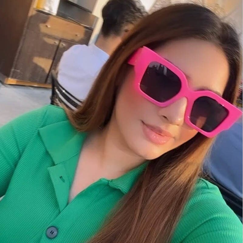 Очки солнцезащитные женские квадратные в толстой оправе, розовые