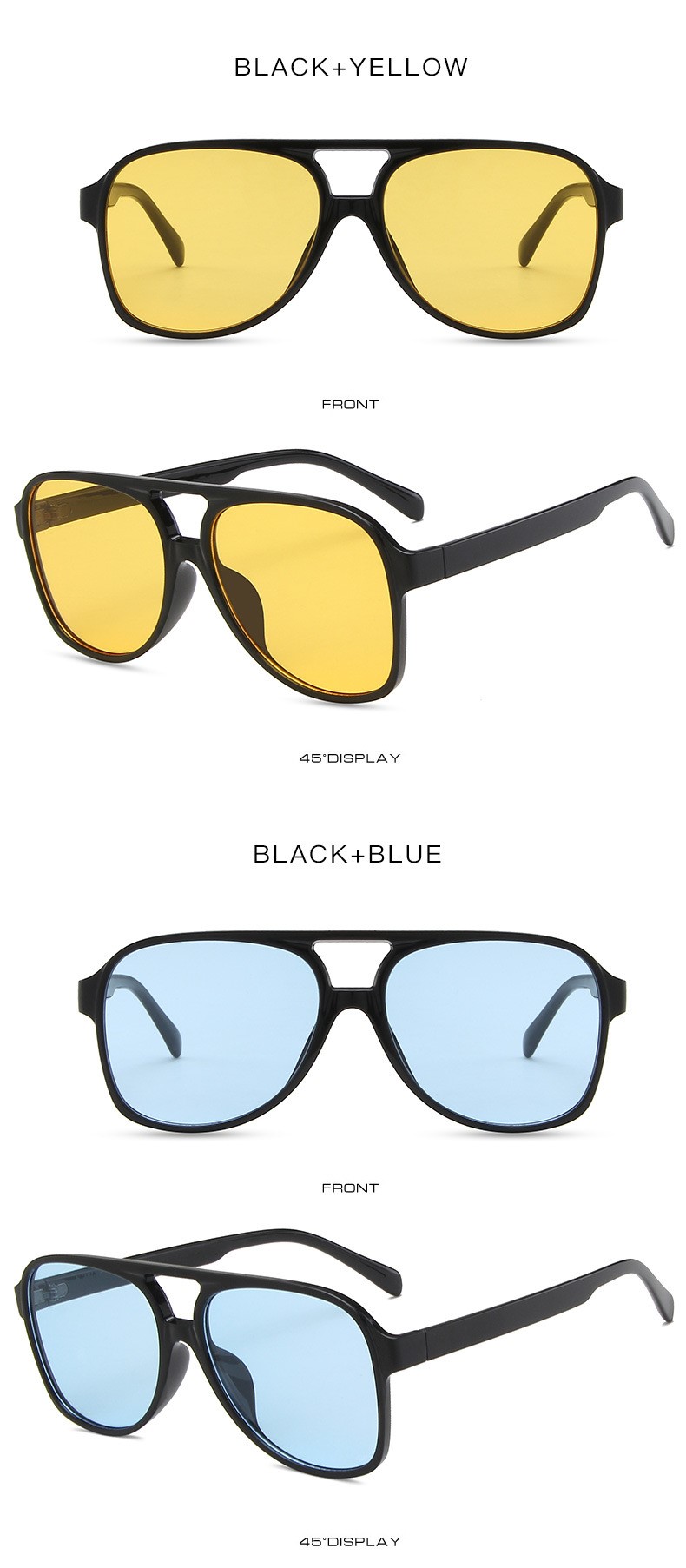 Очки солнцезащитные женские в стиле ретро, винтажные брендовые большие брендовые солнечные очки в квадратной оправе, чёрные желтые, в стиле Ins
