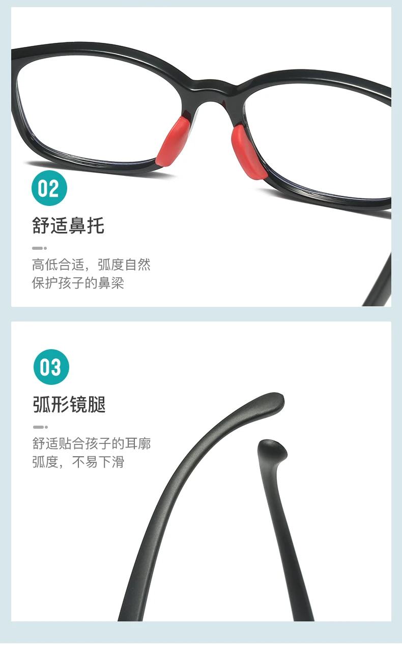 Наш детский фильтр синего света оснащен Сверхлегкой рамкой TR90, которая мягкая, симпатичная, прочная, долговечная и не устарит. Обеспечьте вашего ребенка очками с защитой от синего света черного, коричневого, розового, голубого и других цветов.