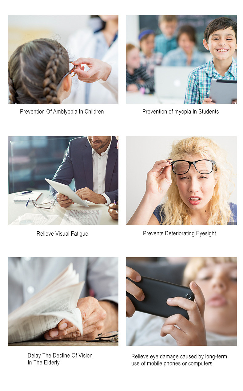 Пожалуйста, носите корректирующие очки 3-5 раз каждый день, каждый раз около 15 минут, после просмотра телевизора, с помощью компьютера или мобильный телефон, вы должны быть должным образом продлены время носки, чтобы он эффективно защитил ваше зрение.