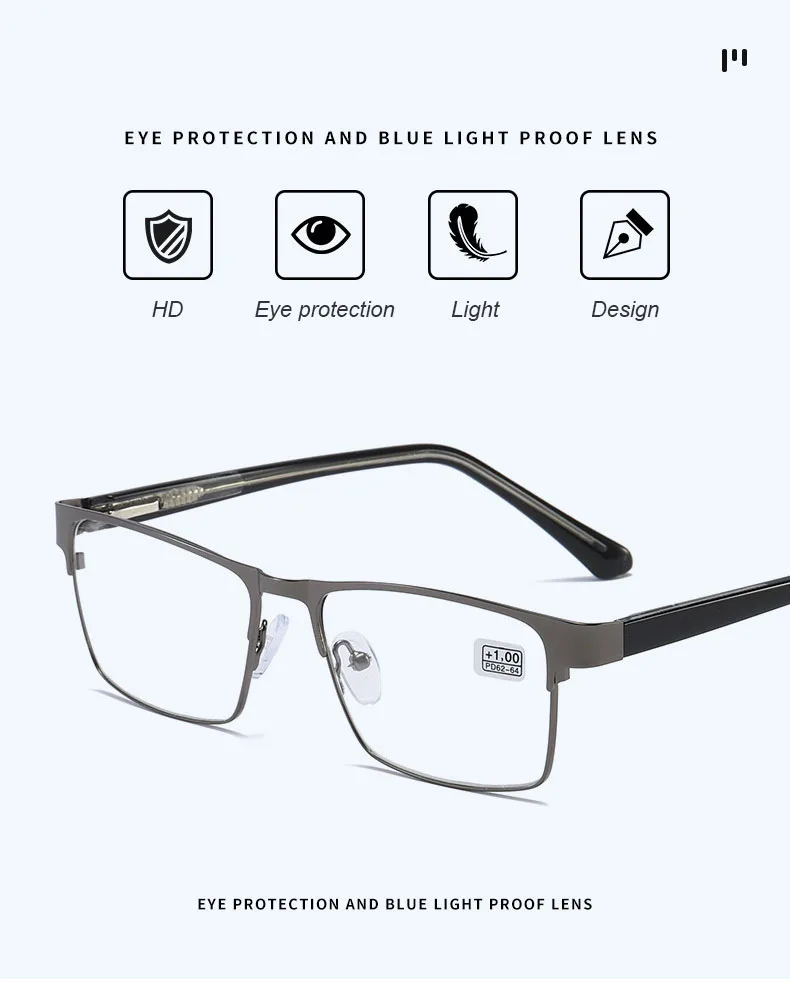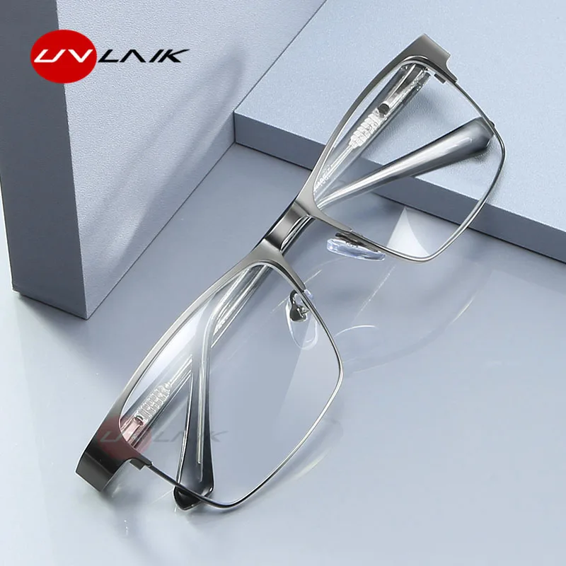 Очки UVLAIK мужские для чтения из нержавеющей стали, оптические деловые, с защитой от сисветильник, сильные металлические пресбиопические очки